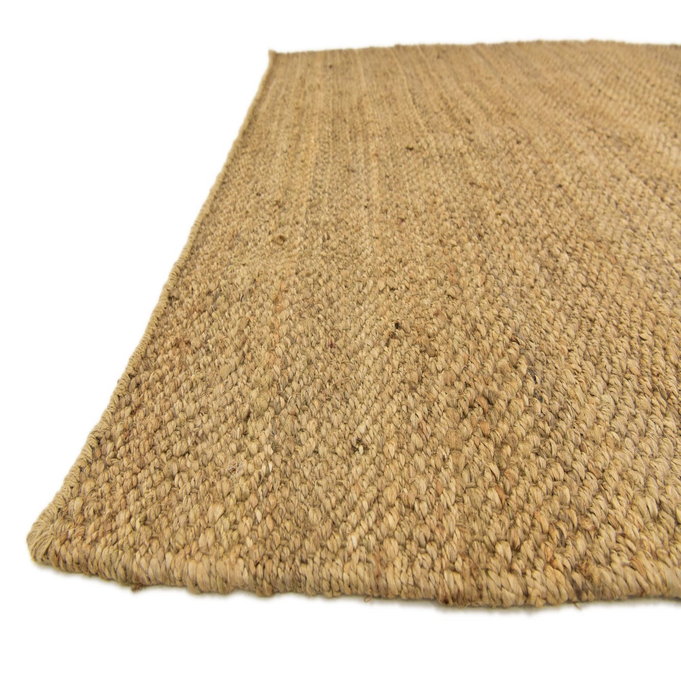 Hand-woven from 100% jute, this rug presents a straightforward, tactile weave with tightly braided rows that create a subtle linear pattern across the field. The background color is Natural, showing warm, sandy beige tones with slight tonal variation from the fiber—an understated, organic look that complements a range of interiors from coastal to modern farmhouse.