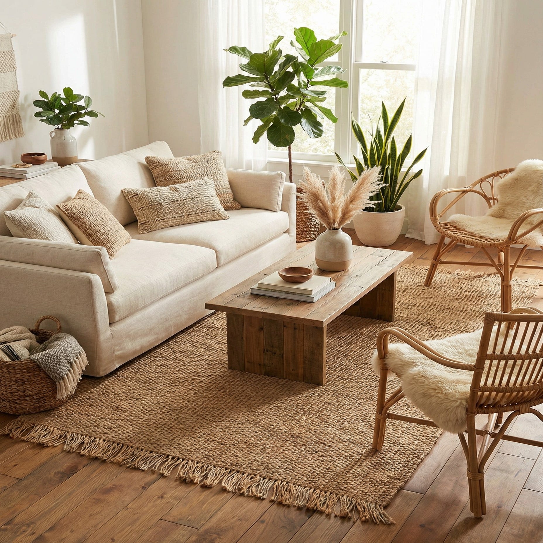 This versatile piece pairs easily with casual, coastal, farmhouse, or Scandinavian interiors. Use it to anchor a seating area under a coffee table, layer it in a bedroom for added warmth and texture, or place it in an entryway or sunroom to introduce natural fiber character. It complements linen upholstery, leather seating, rattan accents, and light wood floors, providing an understated, tactile foundation for a variety of decor schemes.