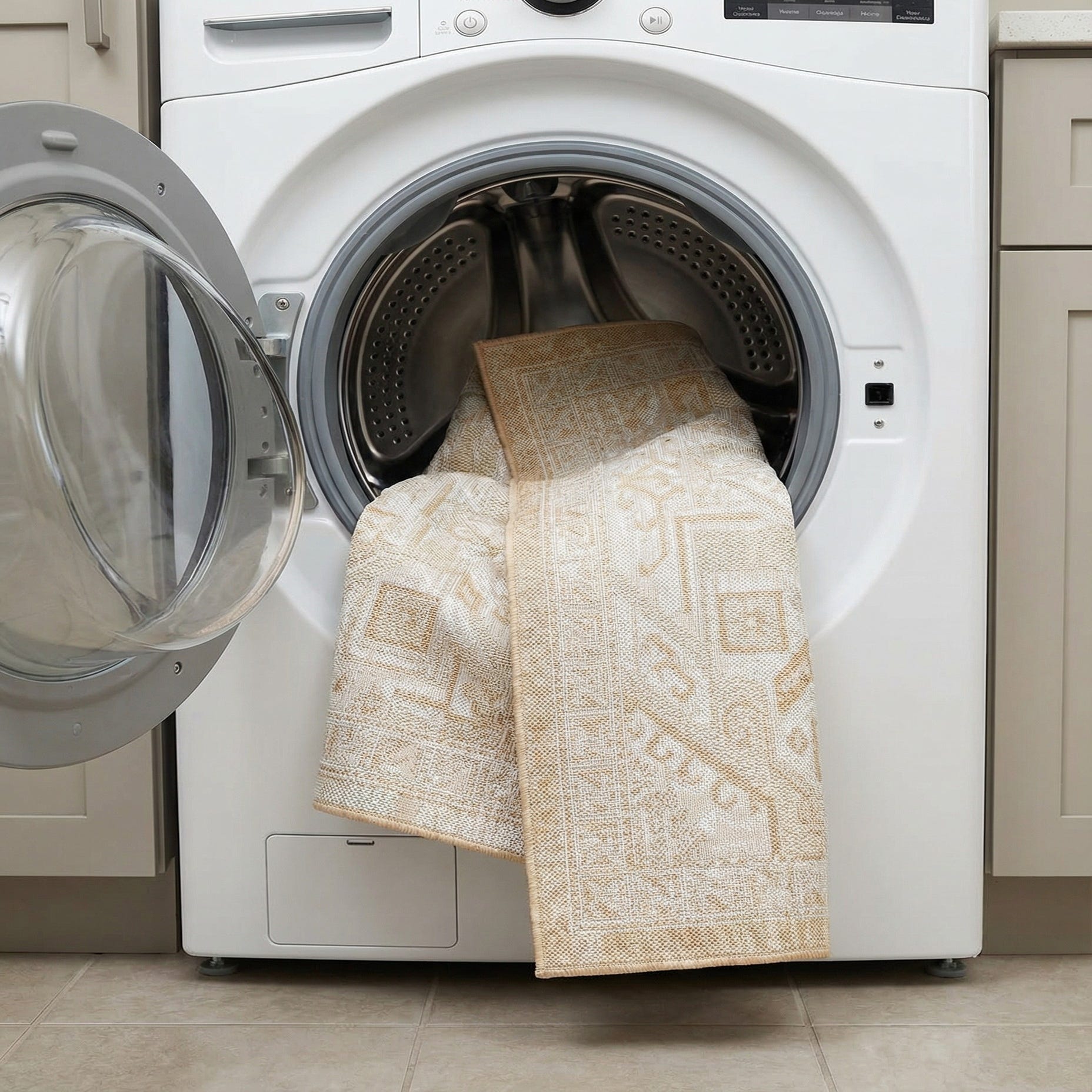 This piece works well on a covered patio, sunroom, or any high-traffic living space where a grounded, neutral anchor is needed. Pair it with rattan seating, linen upholstery, and warm wood finishes for a relaxed, coastal-meets-Southwestern vibe, or slot it into a modern farmhouse or minimalist scheme to add subtle pattern and texture. It also fits nicely under a small outdoor dining set or in front of a porch bench to define a cozy conversation area.