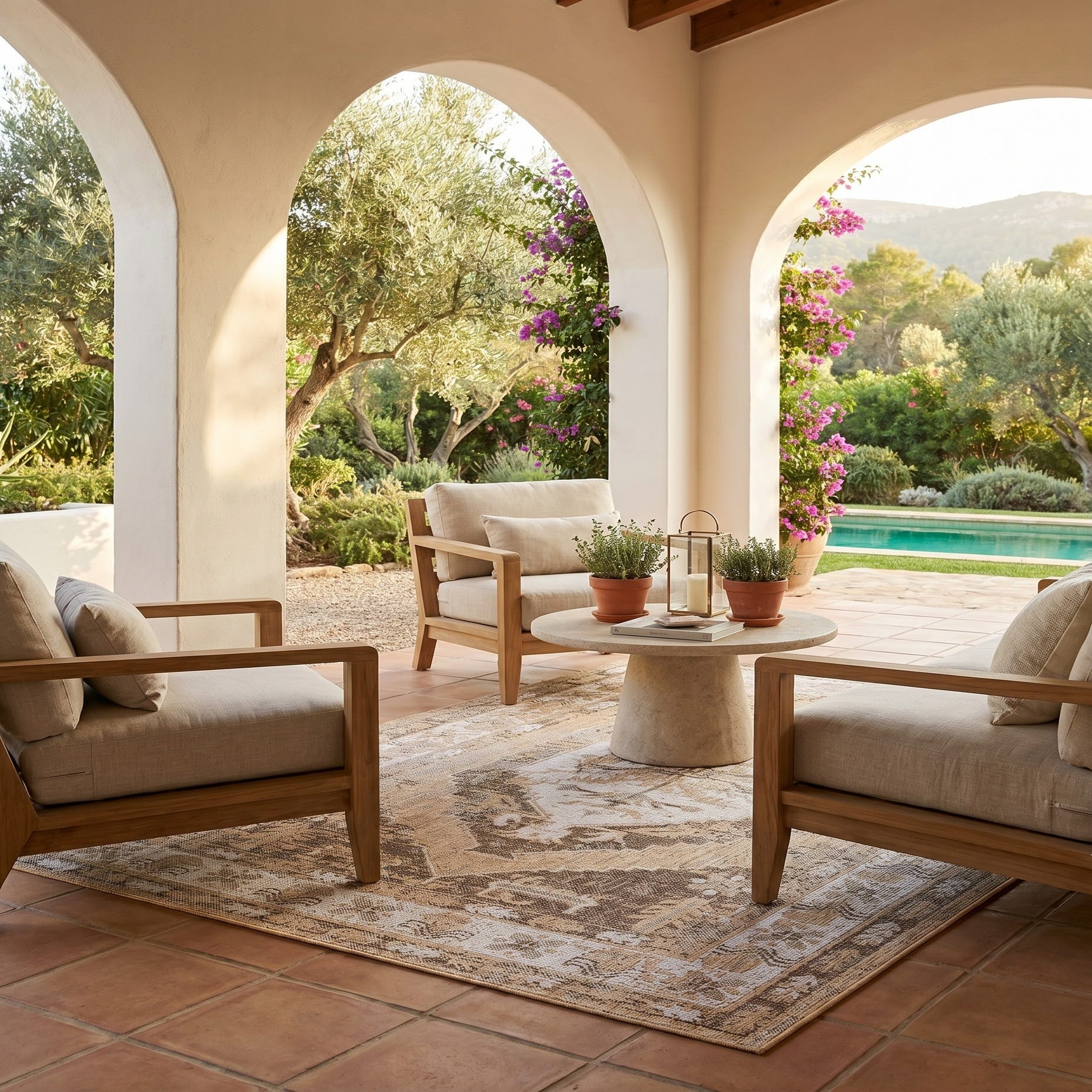5' 3 x 8' Easy-Clean Traditional Indoor / Outdoor Rug