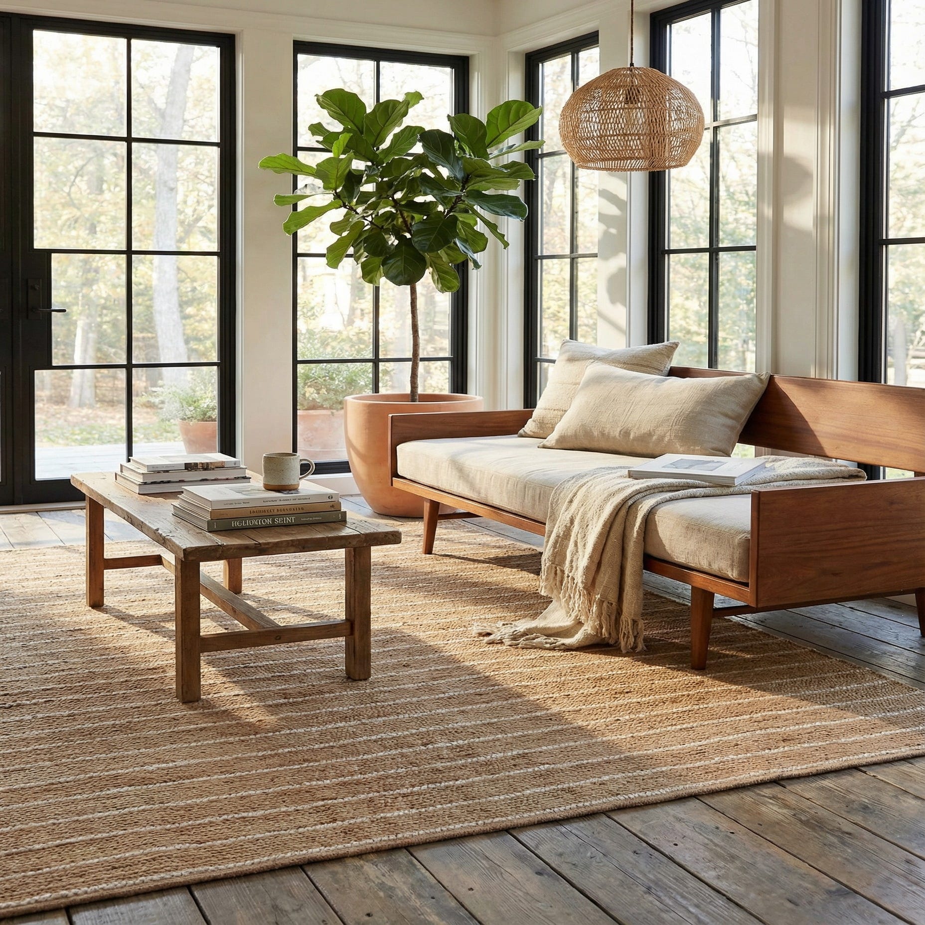 This rug fits well in casual, coastal, farmhouse, or modern-bohemian interiors. Pair it with light wood furniture and linen upholstery for a relaxed living room, place it beneath a dining table to ground natural-finish chairs, or use it in an entry or sunroom to introduce organic texture. It also layers nicely over a larger neutral base for added dimension in a bedroom or home office.