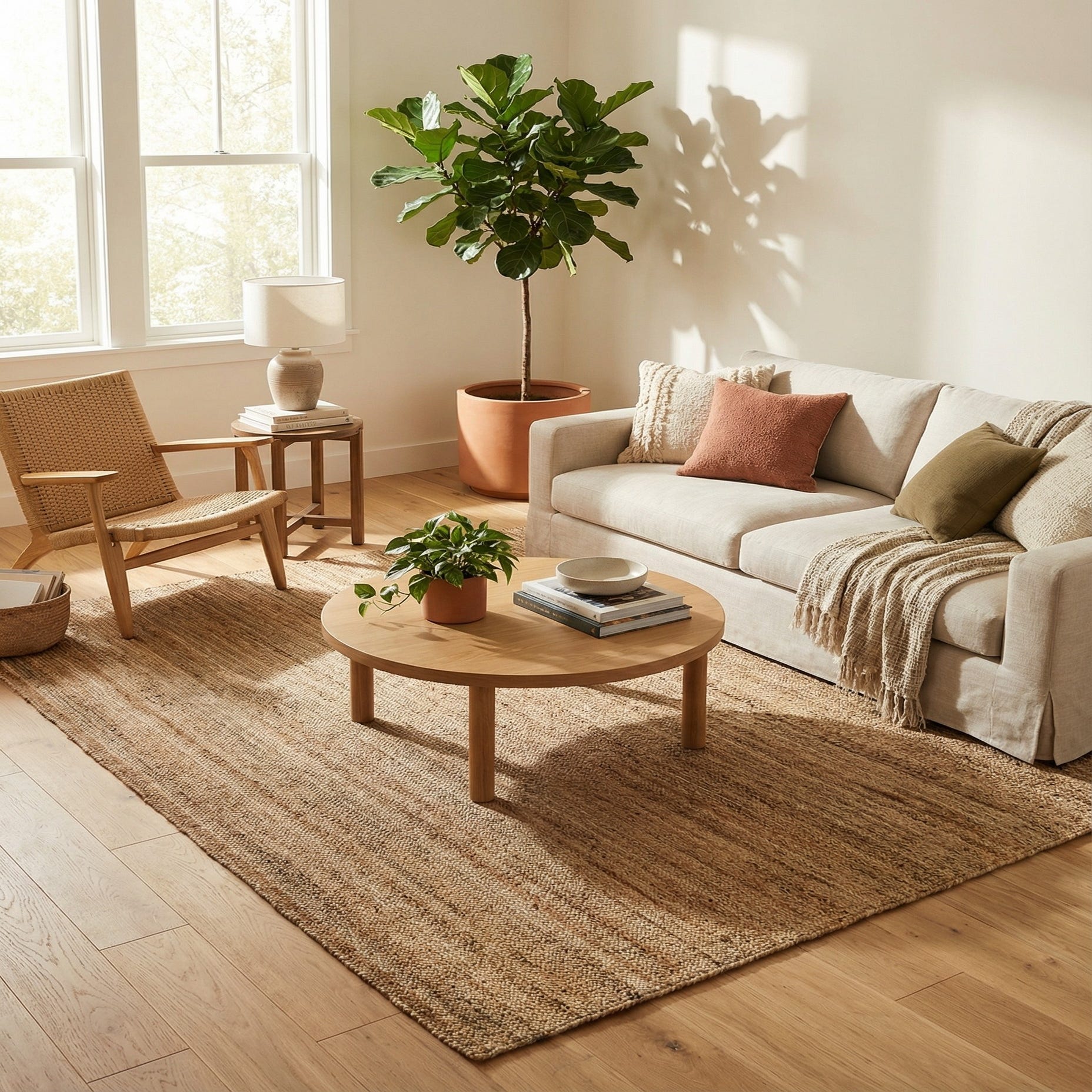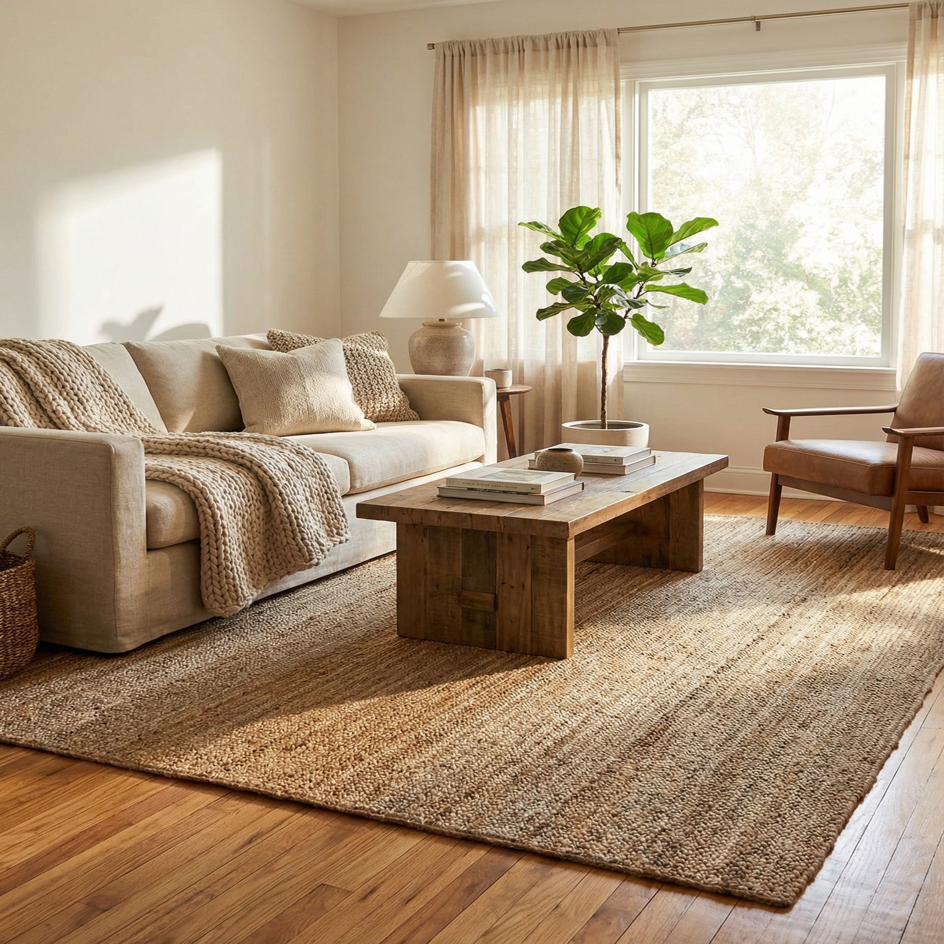 This rug pairs naturally with wood furniture, leather seating, woven accents and neutral upholstery, bringing grounded warmth to living rooms, dining areas or entryways. It also works well layered beneath a smaller patterned rug for a boho or cottage vibe, or placed in a minimalist space to introduce texture while keeping the palette calm and natural.