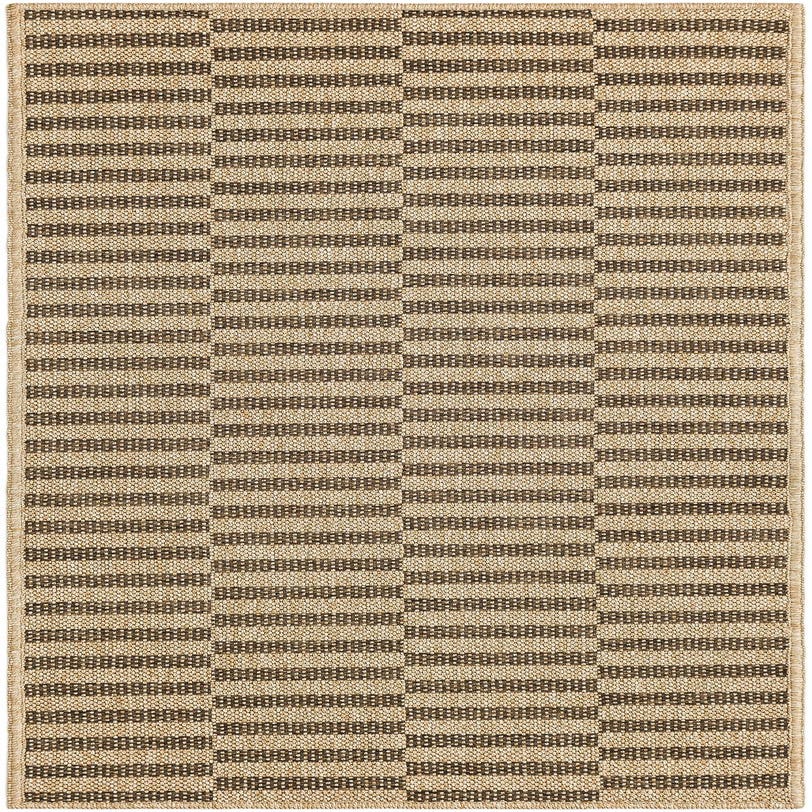 The Dunes Collection 6 Ft Runner rug presents a harmonious blend of natural and brown hues in a classic striped pattern. This machine-woven piece is crafted from polypropylene, ensuring durability and ease of maintenance. The flatweave construction of this runner offers a smooth texture underfoot, complementing its visually appealing design.