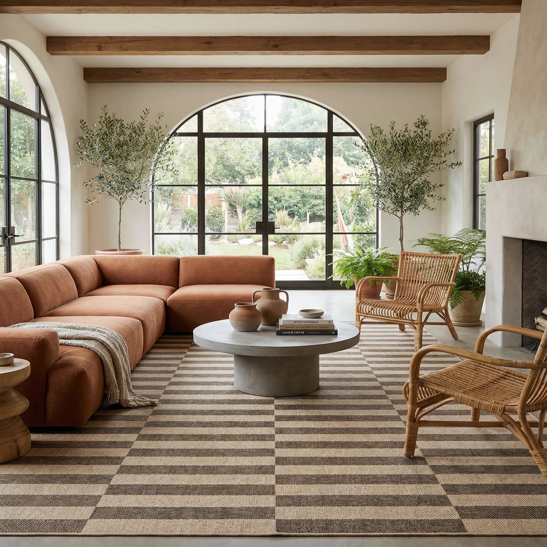 This rug's understated pattern and neutral color palette make it a versatile addition to a variety of interior design scenarios. It would complement minimalist and contemporary decor by adding subtle texture without overwhelming the space. In a traditional setting, the classic stripes can harmonize with more ornate furnishings, offering a grounded, cohesive look. It is equally at home in a casual or coastal inspired interior, where its understated simplicity echoes the relaxed sensibility typical of these styles. The resilience of the material paired with the flatweave design also makes it suitable for outdoor covered areas, expanding the design possibilities throughout the home.