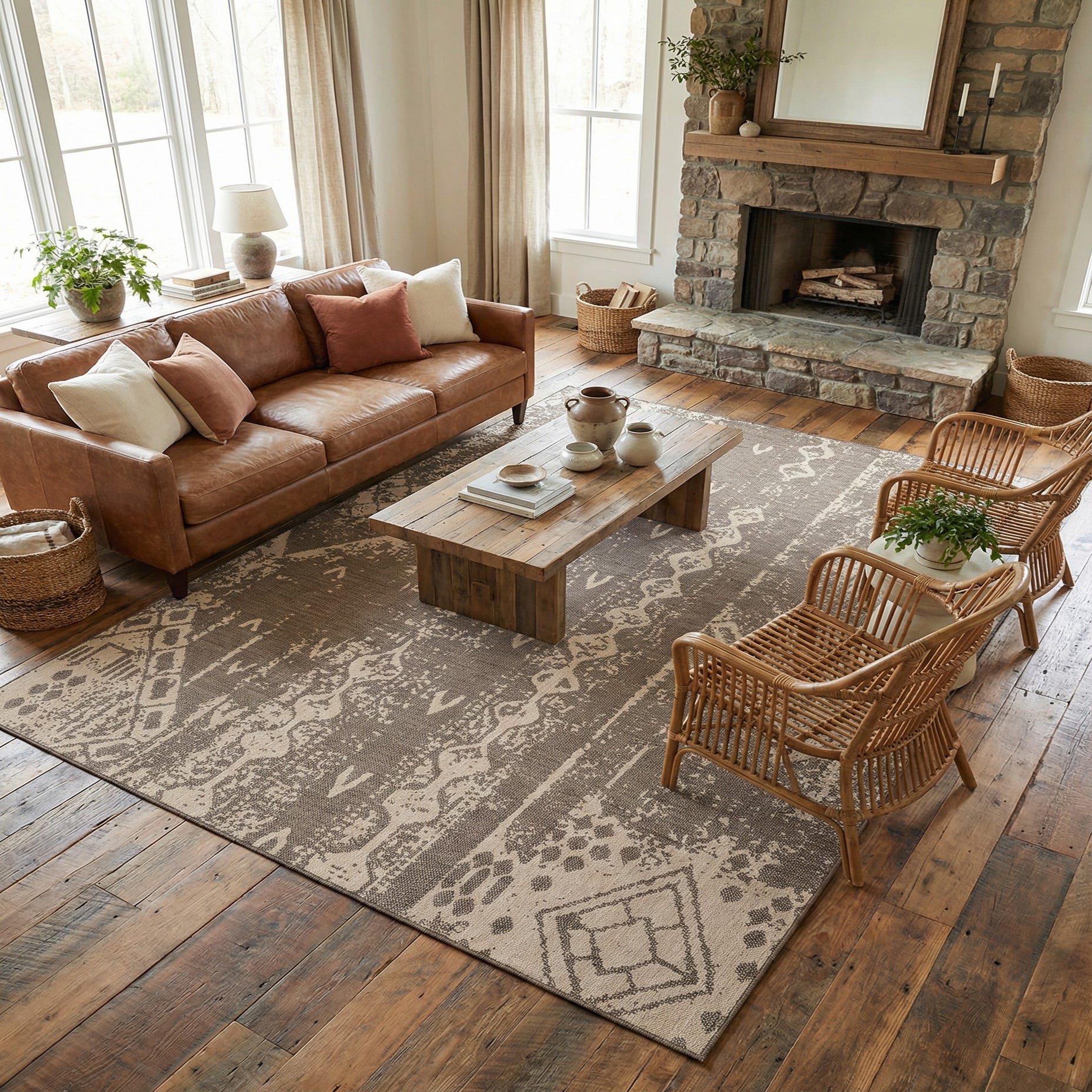 Ideal for anchoring living spaces with an earth-tone theme, this rug can seamlessly integrate into both contemporary and traditional settings. It pairs exceptionally well with minimalistic décor, contributing both a grounding effect and a touch of visual interest without overwhelming the space. It can also complement rooms that feature wooden accents or furniture, harmonizing with natural materials to create an inviting and cohesive environment.