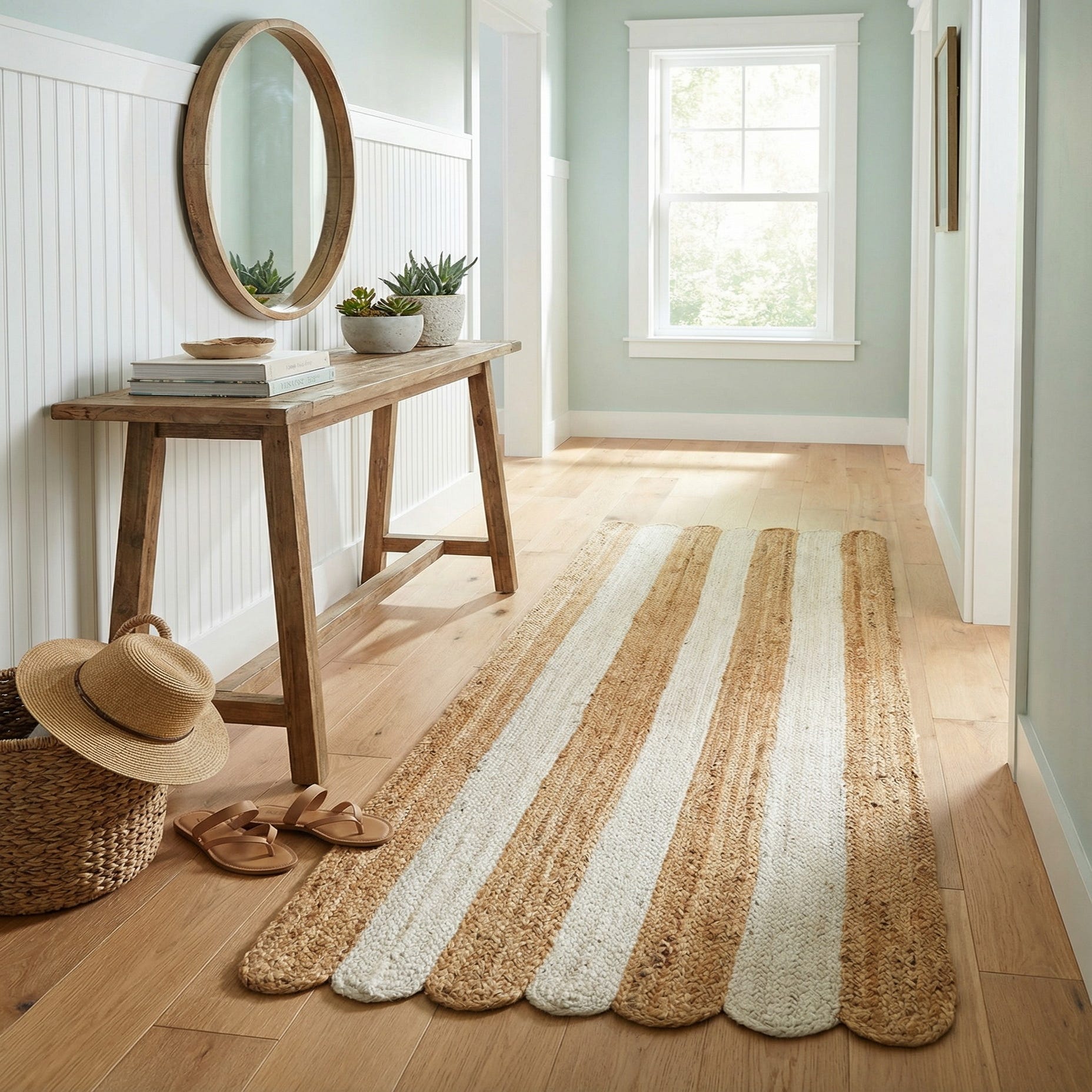 2' x 6' 1 Handmade Scallop Braided Jute Runner Rug