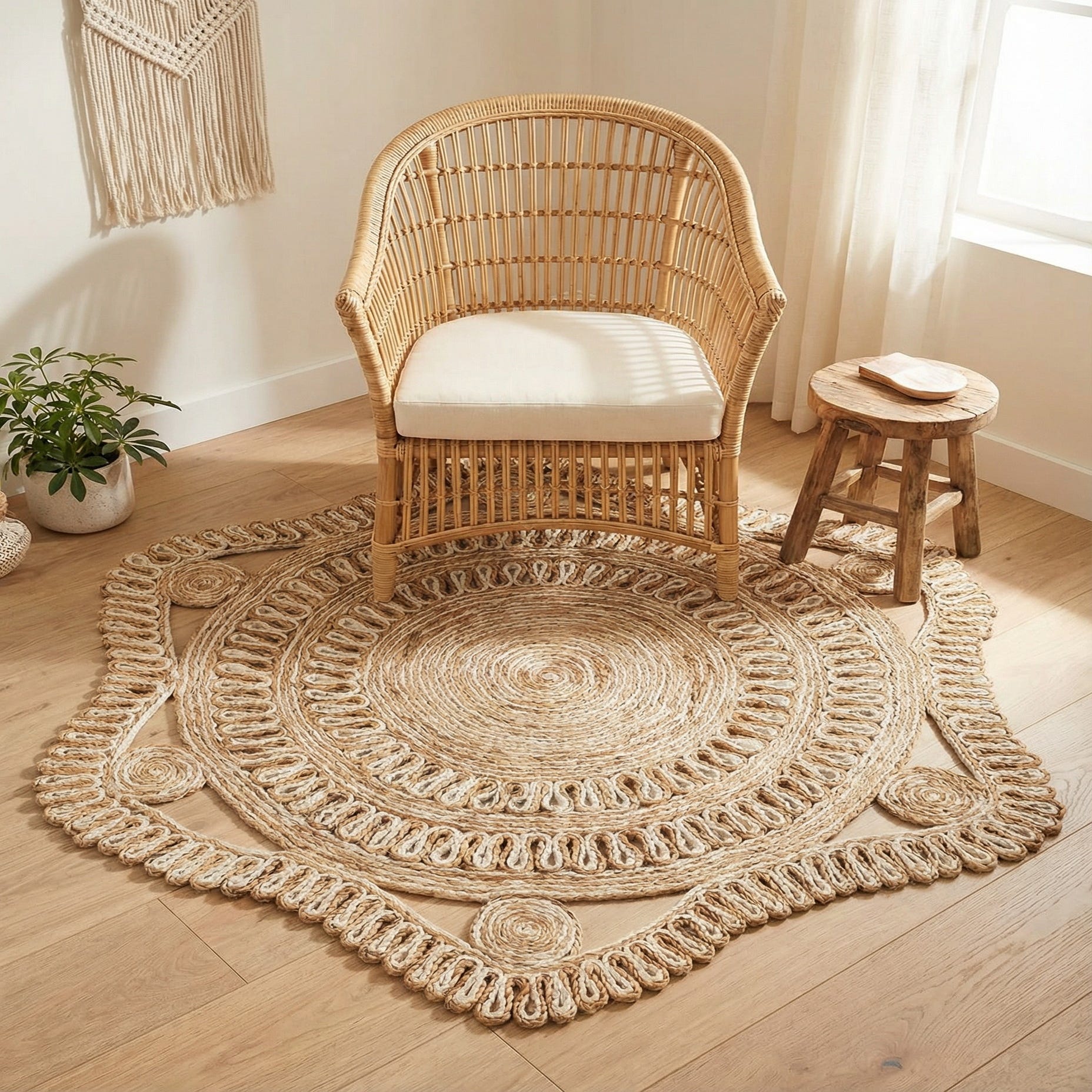 This rug is suited for a variety of decor styles, including coastal, bohemian, rustic, or Scandinavian-inspired interiors. It fits effortlessly into spaces that celebrate natural elements and handcrafted artistry. Whether placed in a casual living room, under a dining table, or in an entryway, this rug creates a warm, inviting atmosphere, complementing furnishings with its understated charm.