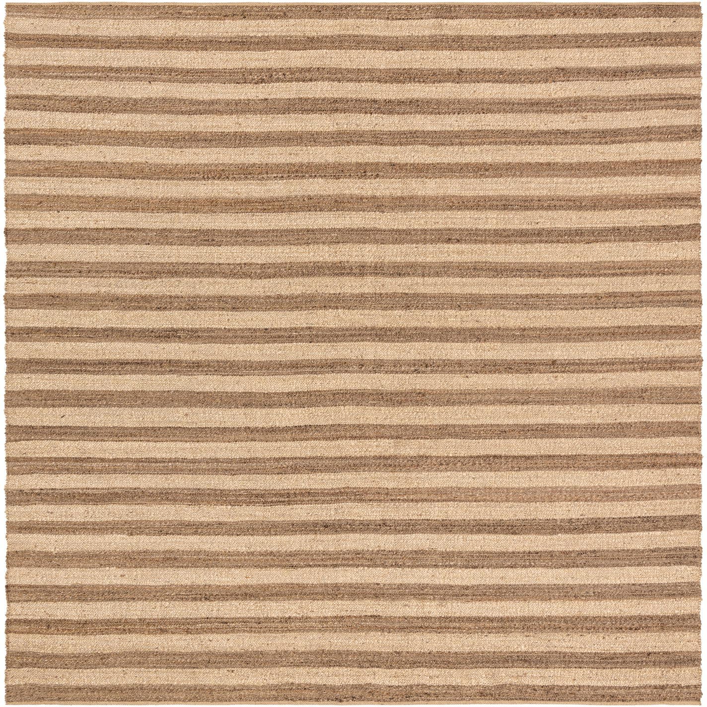 Hand-braided from 100% jute, this rug presents a clean, horizontal stripe pattern in alternating bands of Natural Ivory and warm tan. The braided construction gives the stripes subtle tonal variation and a lightly ribbed surface that reads both natural and refined. Its neutral palette and understated linear motif fit a range of styles—coastal, modern farmhouse, transitional, and relaxed Scandinavian interiors.