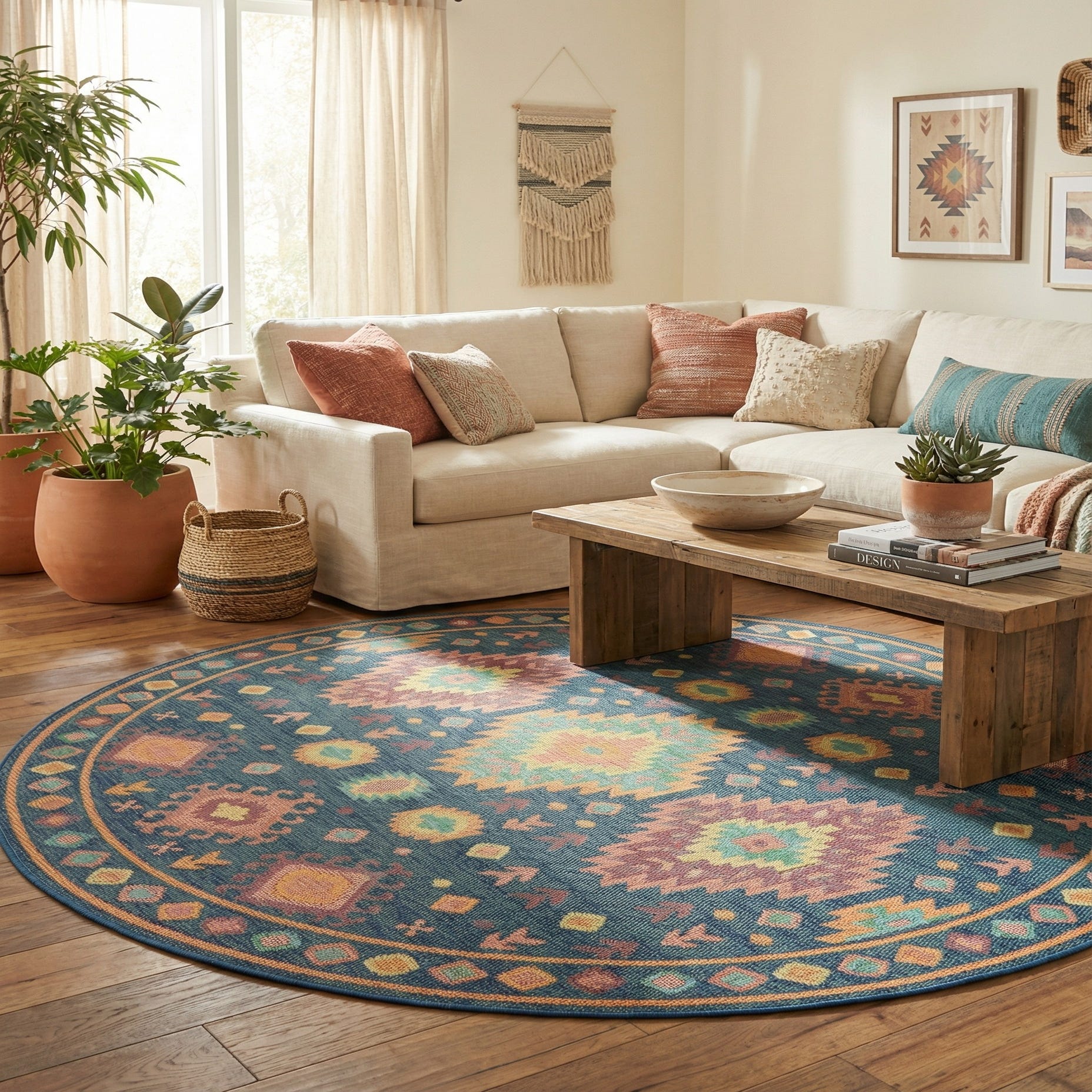 10' x 10' Washable Baja Indoor / Outdoor Round Rug