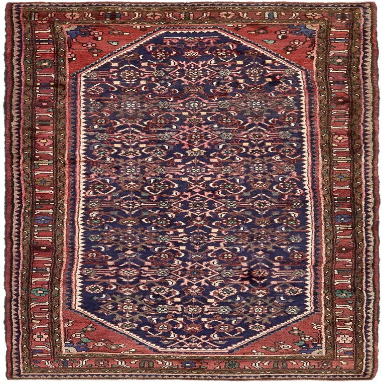 3' 9 x 9' 10 Hand Knotted Hossainabad Persian Wool Runner Rug