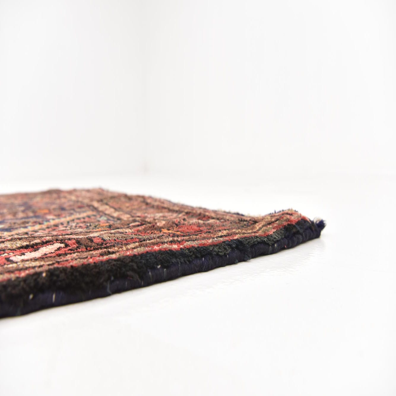The Hossainabad Hand-Knotted Wool Runner is a splendid example of traditional craftsmanship that brings timeless elegance to elongated spaces. This 10-foot runner boasts a deep navy blue background, accentuated with a harmonious mix of red, ivory, blue, pink, green, and olive hues in an intricate, densely patterned design. Its luxurious wool pile, hand-knotted to perfection, offers a durable and tactile surface that stands the test of time, evidenced by its semi-antique status of 40-60 years old.