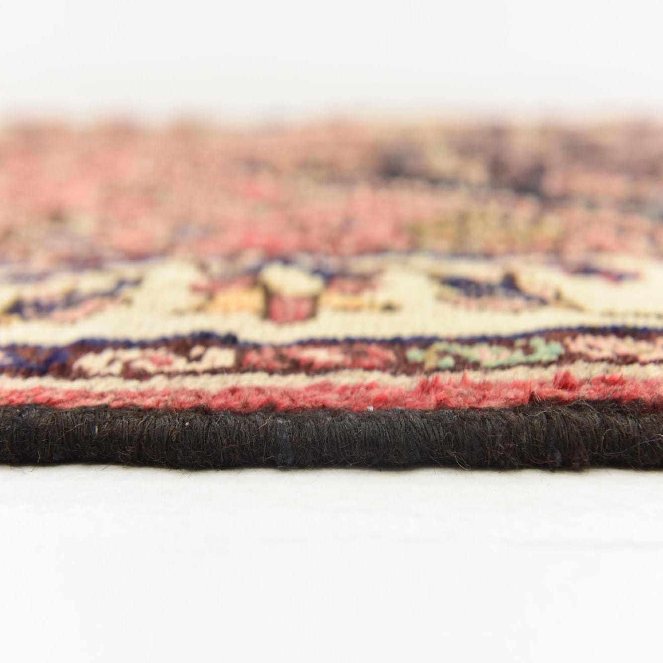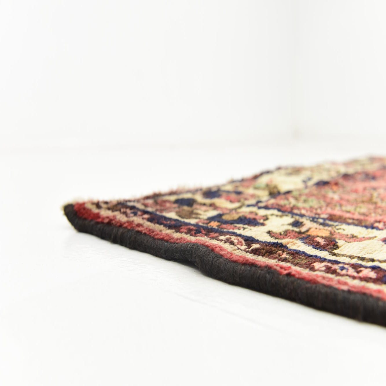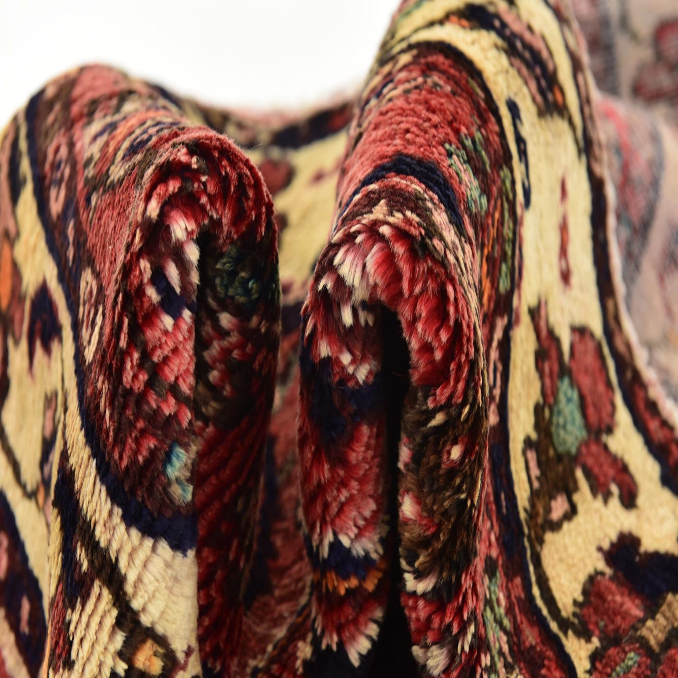 With a semi-antique age of 40-60 years, the rug possesses a timeless charm reinforced by the authentic fringe detailing on the edges. Its durable wool construction offers a pleasantly tactile experience underfoot while ensuring longevity. The precise hand-knotted technique used in its creation ensures each aspect of the ornate pattern is crisp and well-defined.