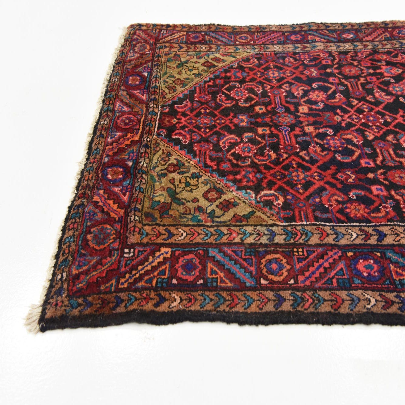 3' 11 x 10' Hand Knotted Hossainabad Persian Wool Runner Rug
