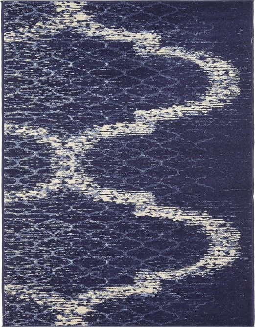 Primary color is Navy Blue. Colors in this rug include: Navy Blue, Beige, Cream, Light Blue.