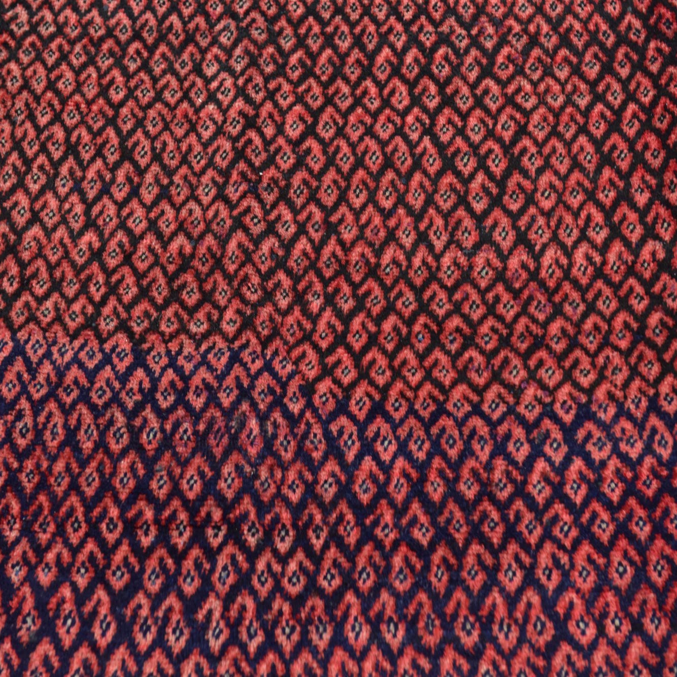 Primary color is Navy Blue. Colors in this rug include: Navy Blue, Black, Blue, Light Blue, Red, Peach, Pink.