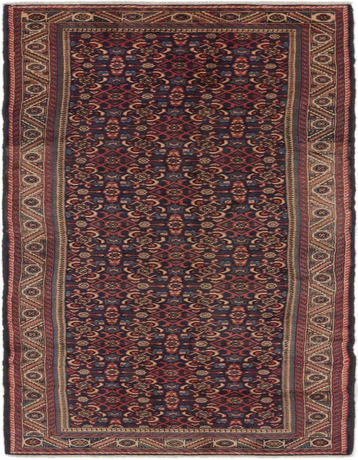 Primary color is Navy Blue. Colors in this rug include: Navy Blue, Beige, Black, Blue, Brown, Green, Ivory, Red.