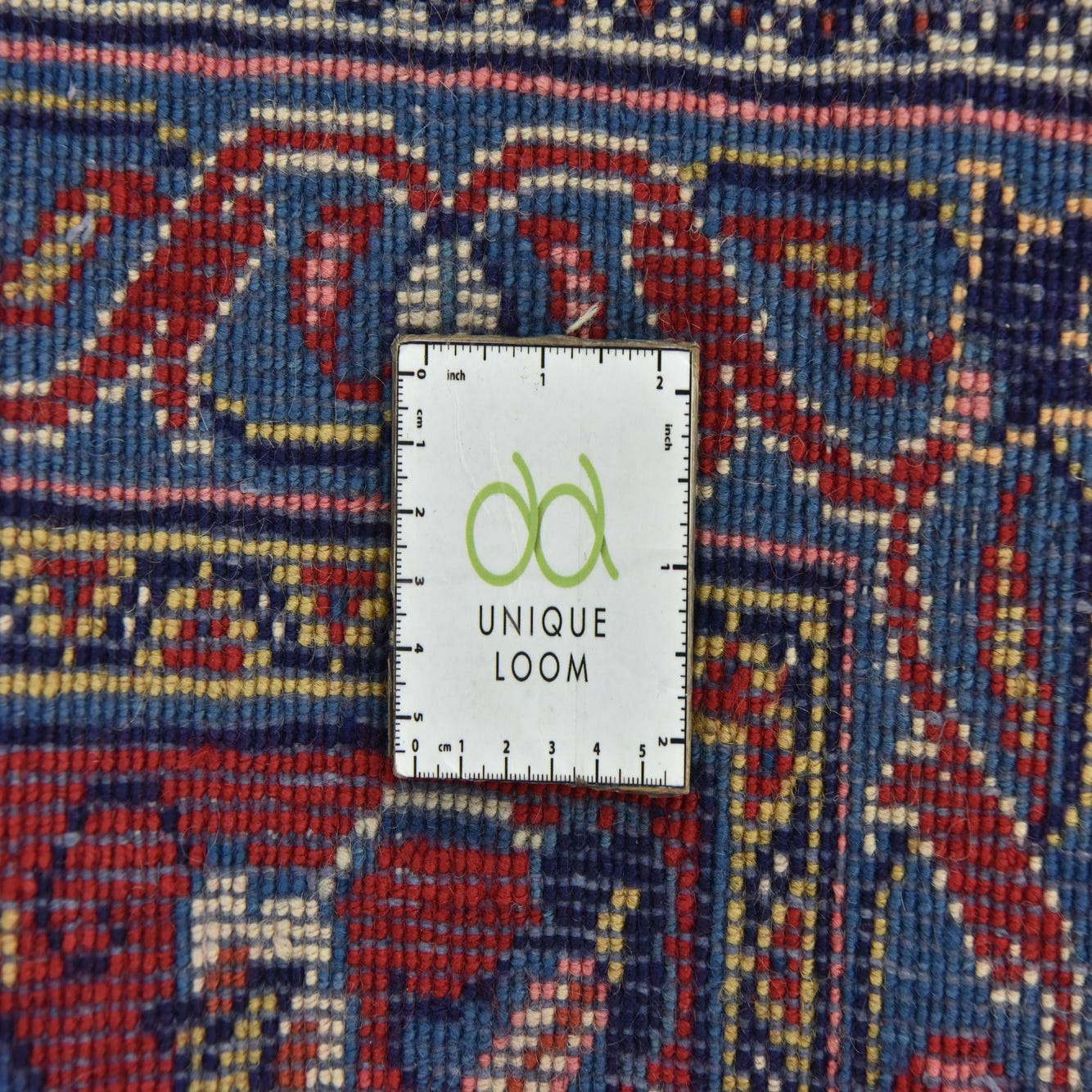 Primary color is Navy Blue. Colors in this rug include: Navy Blue, Beige, Black, Blue, Green, Ivory, Pink.