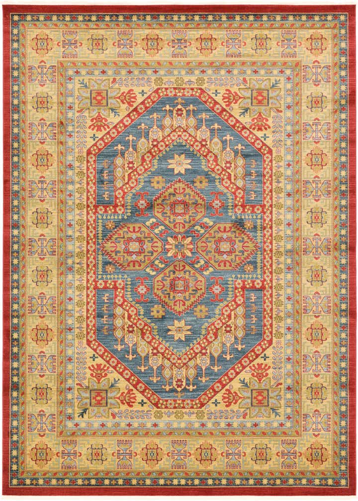 With its bold colors and elaborate pattern, this rug is well-suited for spaces that draw on classic or transitional decor. It can anchor a living room with rich wooden furnishings or add depth to a dining area with complementary warm tones. Despite its traditional roots, it can also offer a striking contrast in a more minimalist setting, where its complexity can stand as a focal point amidst clean lines and modern design elements.