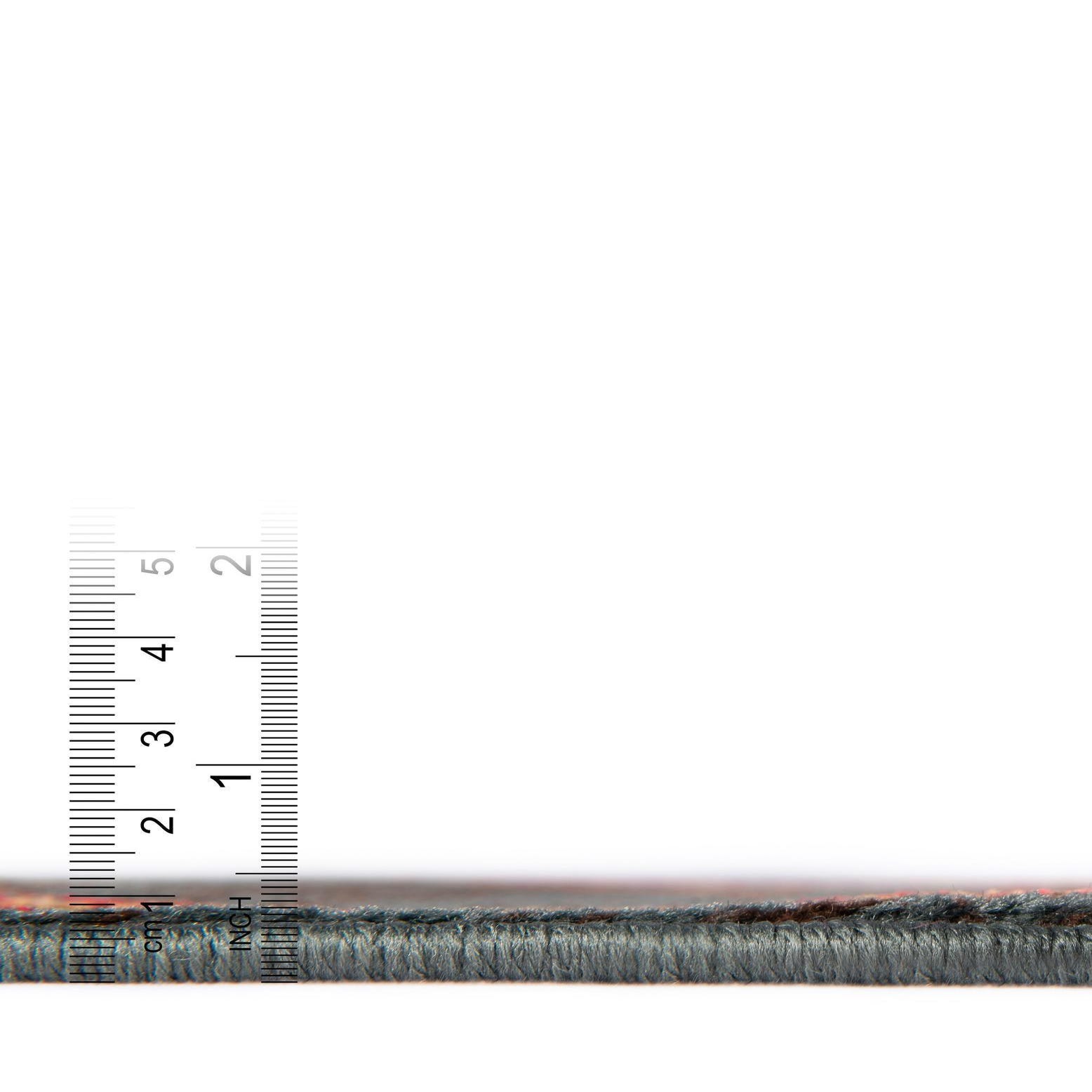 Primary color is Navy Blue. Colors in this rug include: Navy Blue, Blue, Gray, Light Blue, Light Brown, Red, Brown.