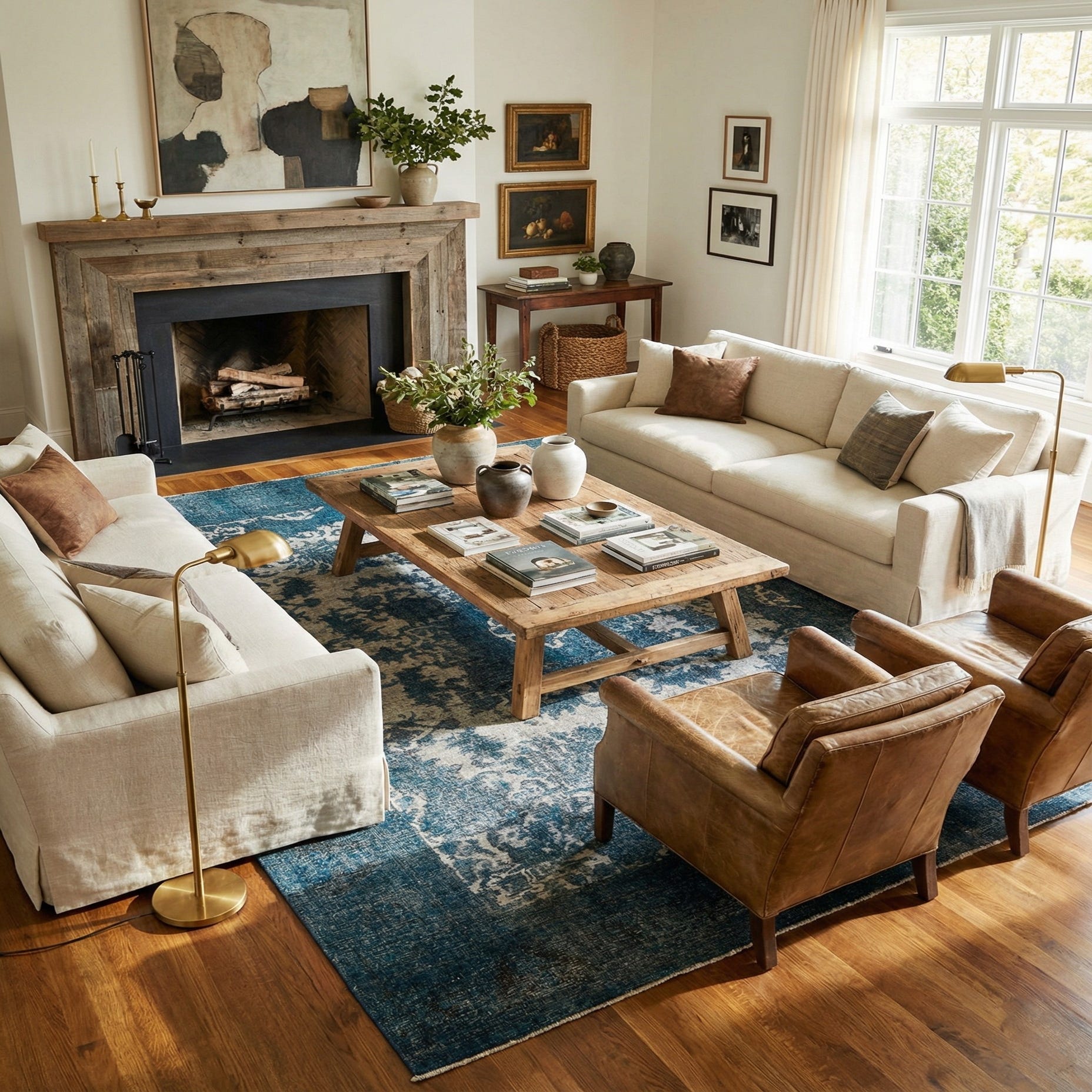 This rug could be a fitting addition to interiors that aim for a classic look with a hint of history. It would integrate harmoniously in settings such as a formal living room, a stately office, or a refined dining area. Its traditional elements would complement antique or traditional furniture, while the deep navy palette could anchor spaces that employ a range of neutral or subdued colors, adding depth and a touch of regality to the decor.