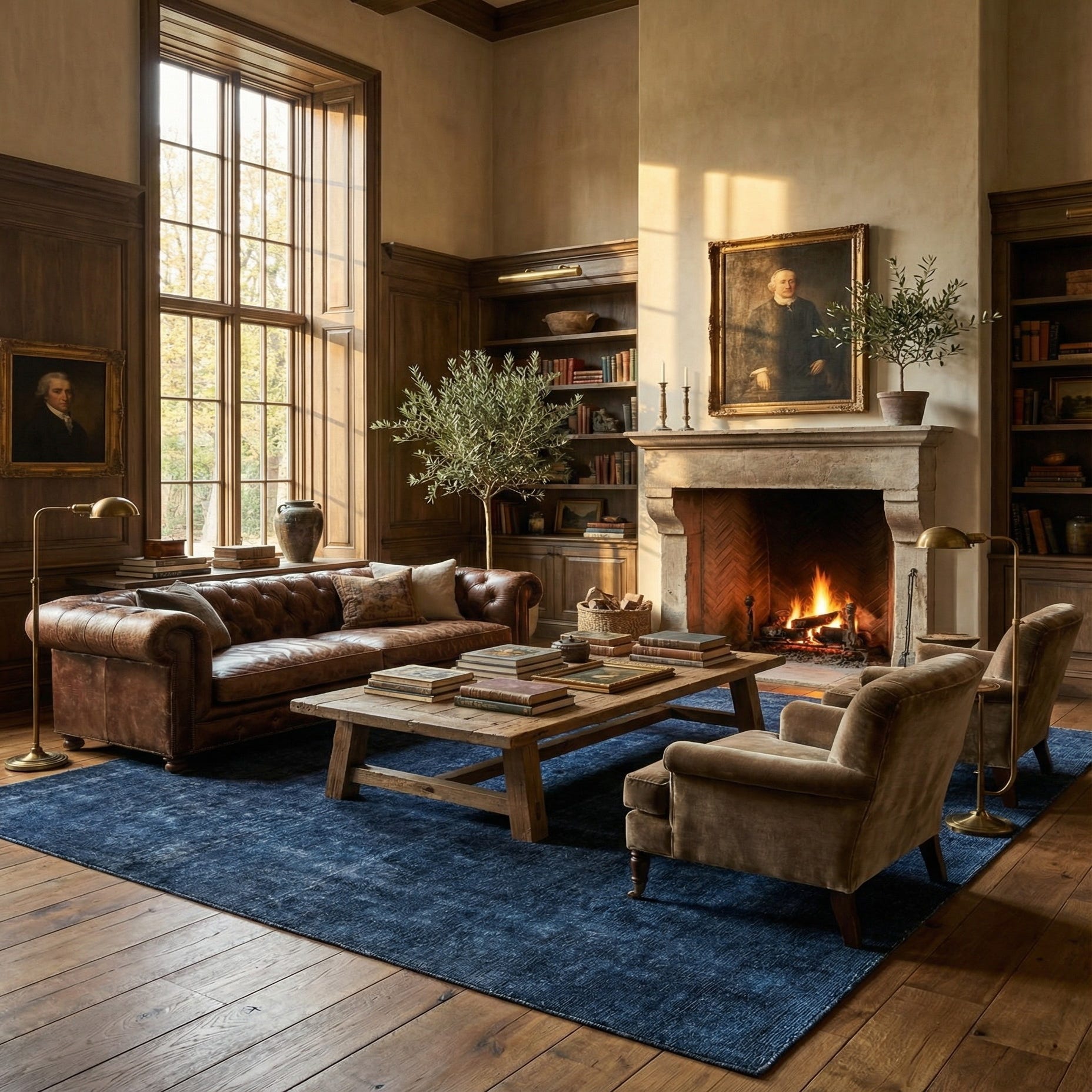 Primary color is Navy Blue. Colors in this rug include: Navy Blue, Blue.