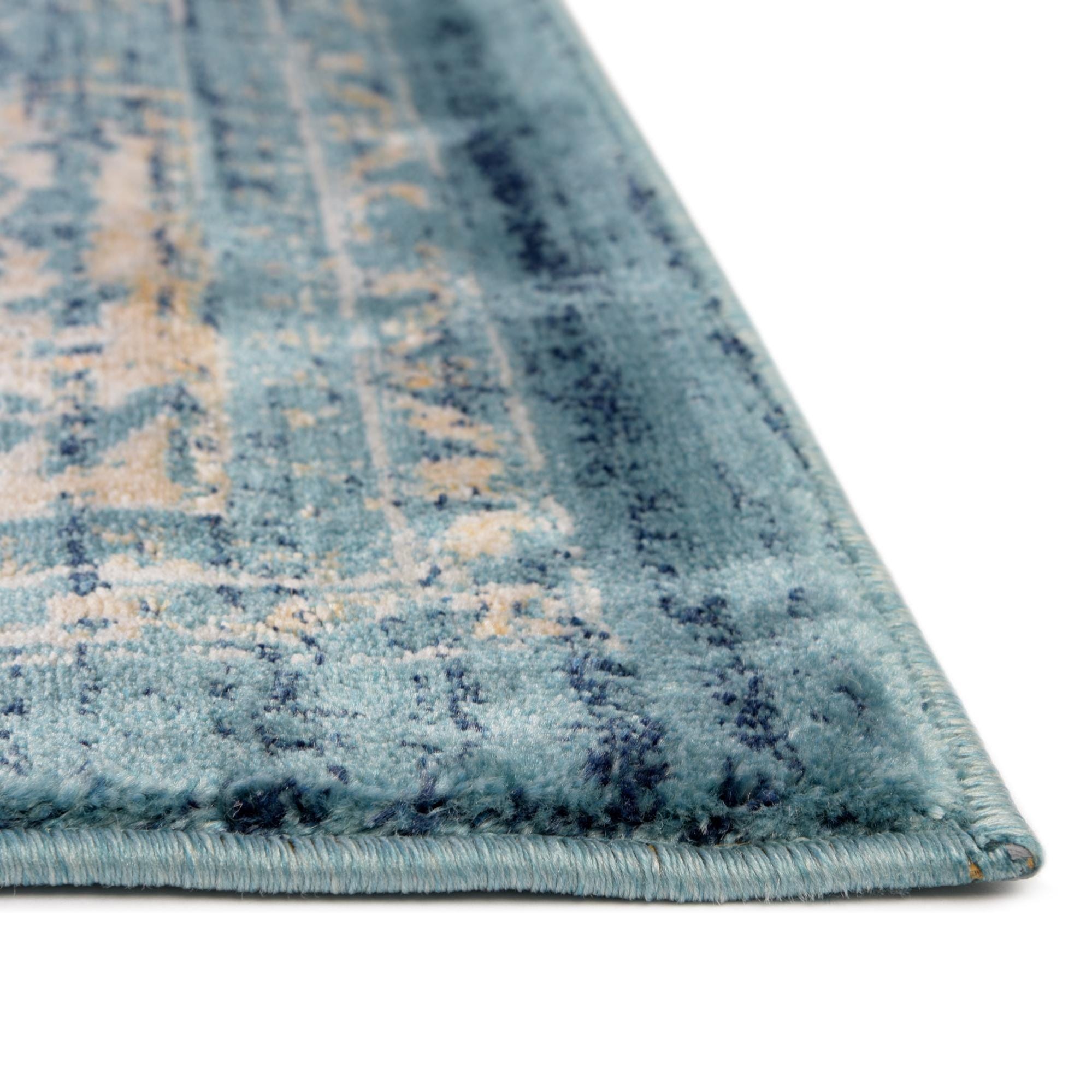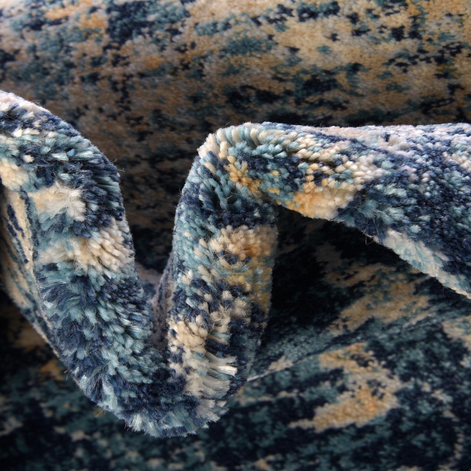 Crafted from 100% polypropylene fibers, the rug is designed to offer inherent stain resistance, and its pile promises a shed-free experience. The blend of colors within the design enables this piece to anchor a space with its navy base, while the lighter highlights bring a sense of dimension and movement to the overall visual narrative.