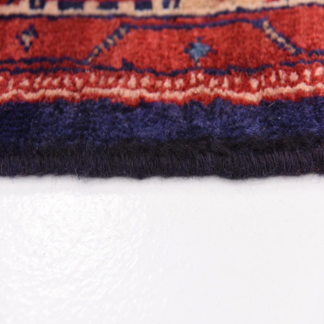This runner is finished with a fringe that enhances its authentic appeal. Given its long and slender dimensions, it is well-suited for hallways, entryways, or alongside a dining room table, adding a sense of timelessness and sophistication to the space. The rug's traditional pattern and color palette pair effectively with rich wood tones, antique furnishings, and decor that echoes its historical provenance. However, it can also serve as a striking contrast in more modern settings, grounding contemporary elements with its classic aesthetic.