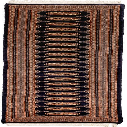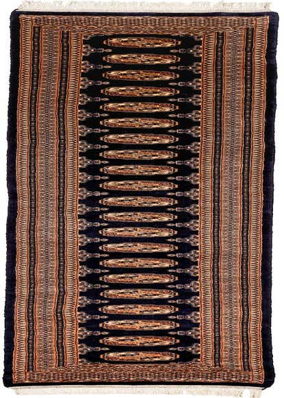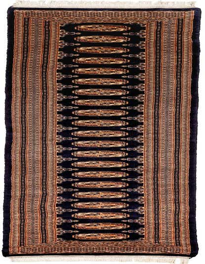 Primary color is Navy Blue. Colors in this rug include: Navy Blue, Ivory, Brown, Blue, Gold.