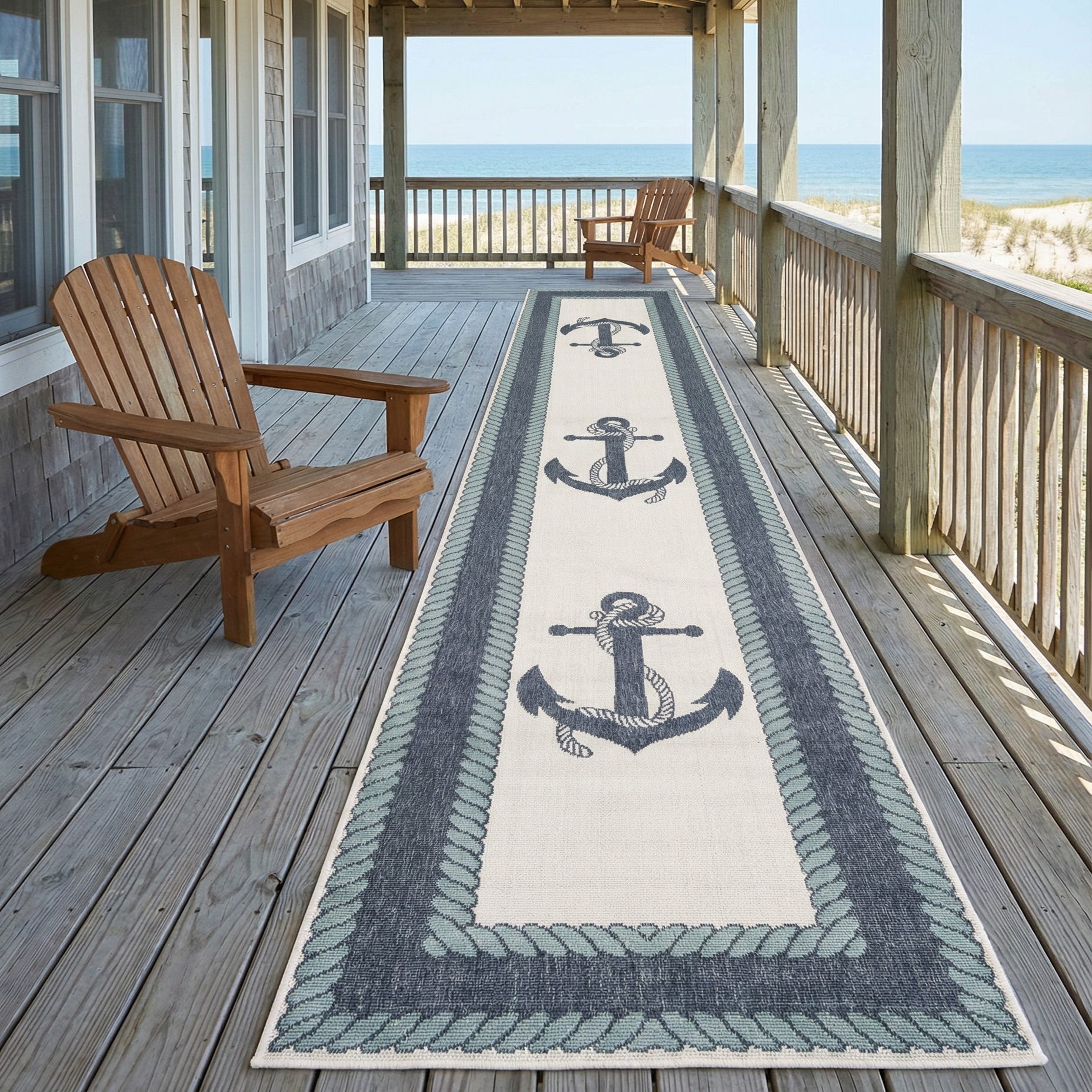 2' 7 x 12' Washable Coastal Indoor / Outdoor Runner Rug