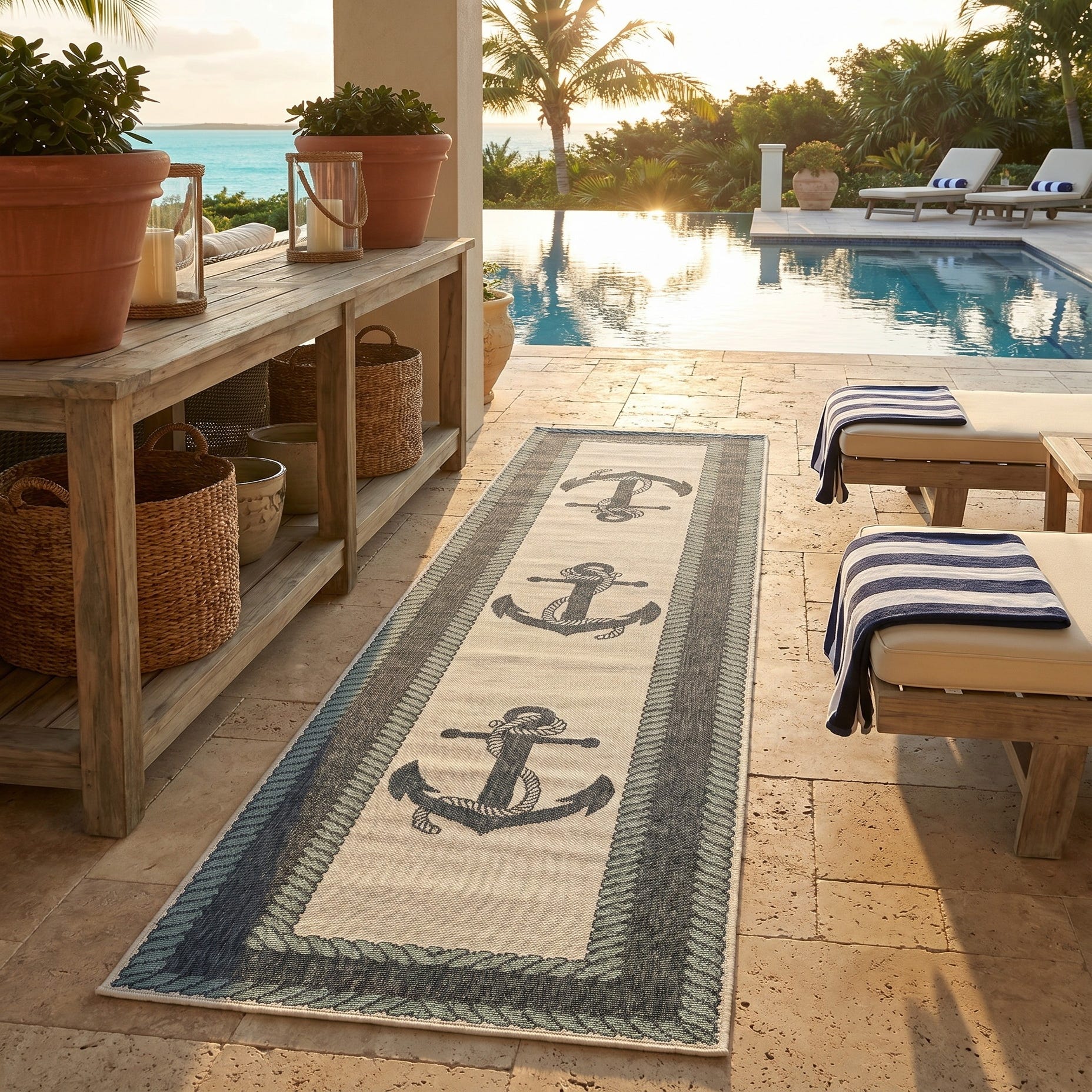 2' 7 x 12' Easy-Clean Coastal Indoor / Outdoor Runner Rug