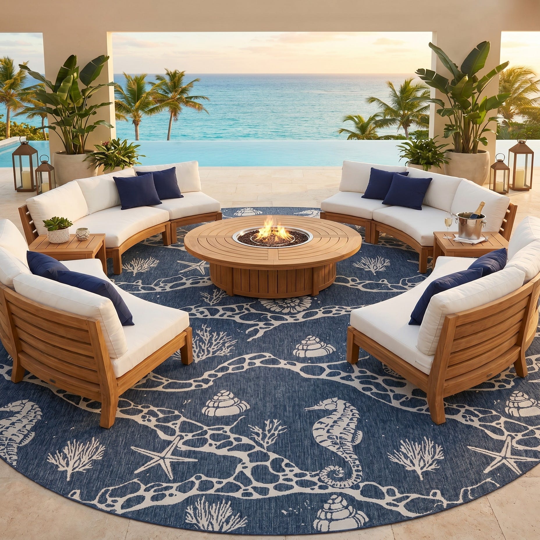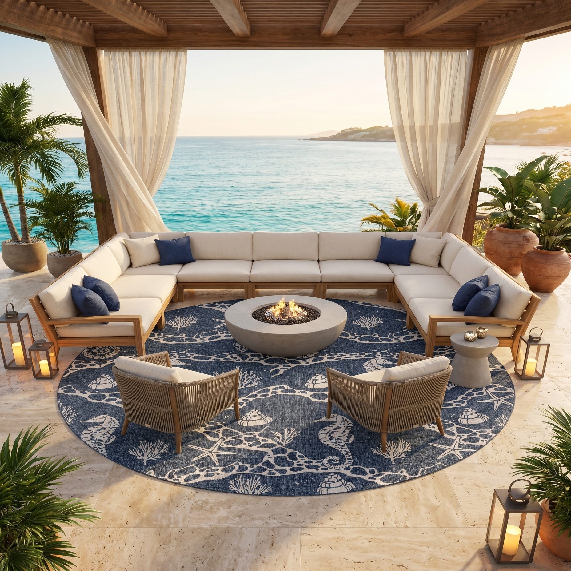 13' x 13' Easy-Clean Coastal Indoor / Outdoor Round Rug
