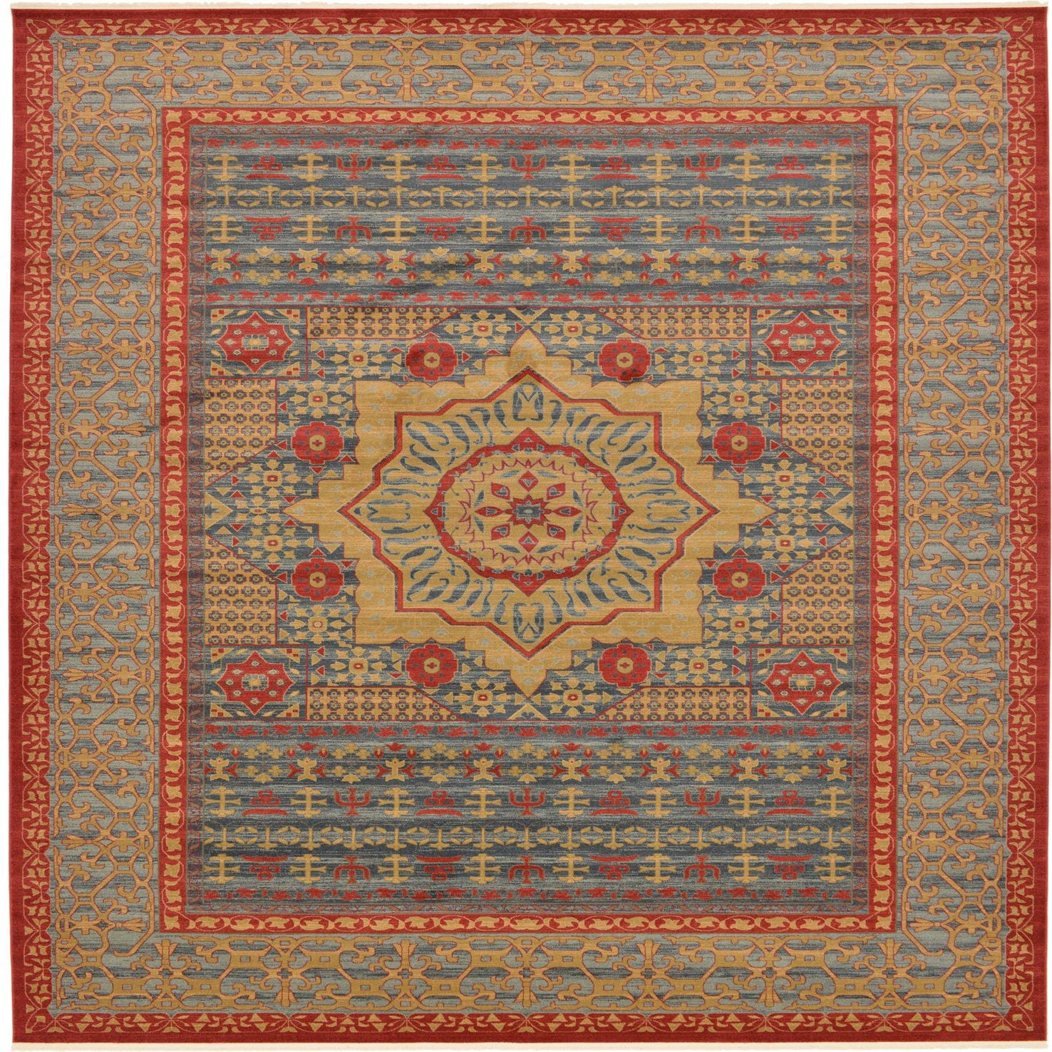 Primary color is Navy Blue. Colors in this rug include: Navy Blue, Red, Light Blue, Light Brown, Light Green.
