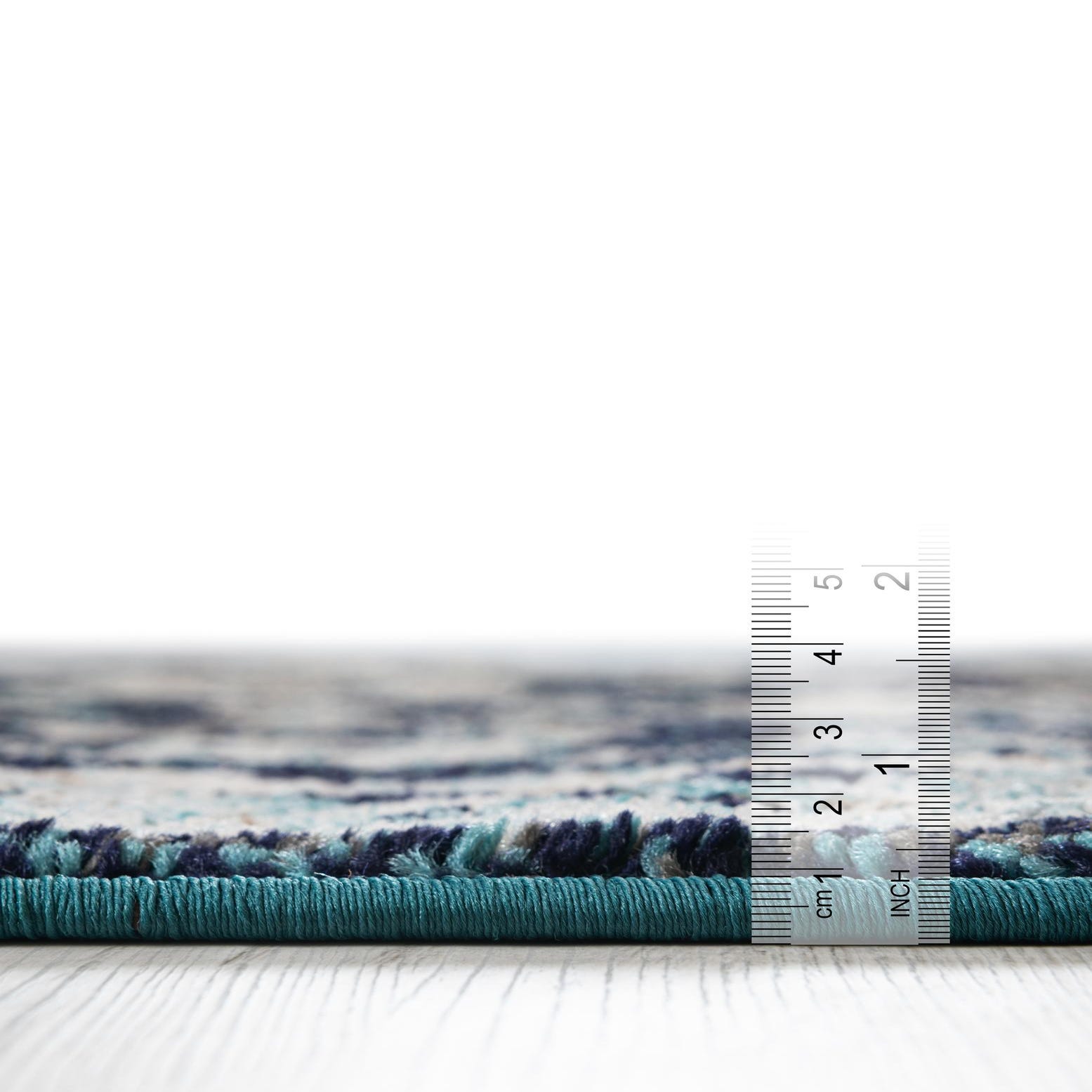 Machine-made from 100% polypropylene, the rug has a low-to-medium pile with a slightly soft, resilient hand and a faint sheen that catches light across the surface. The pattern offers subtle sculpted relief you can feel underfoot, making it comfortable placed where people pass through or pause to sit. It works well as an accent runner in an entry or hallway, a grounding layer in a casual living room, or a bedside rug that ties together navy, neutral, and blue accessories. Pair it with light- to medium-toned woods and mixed-metal fixtures for a transitional look, or use it to introduce deeper color into coastal, cottage, or modern farmhouse schemes.