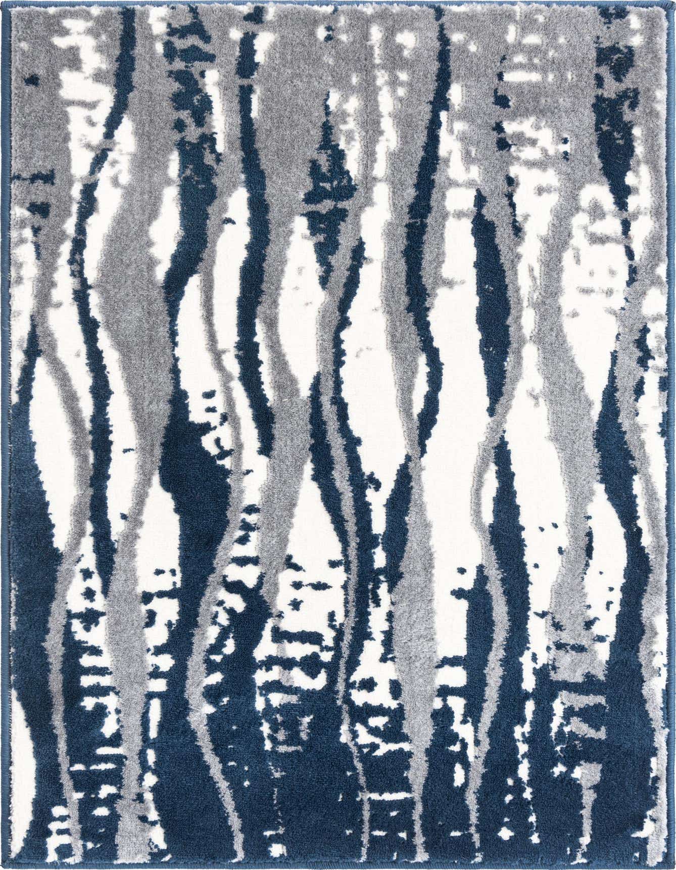 Primary color is Navy Blue. Colors in this rug include: Navy Blue, Gray, Ivory.