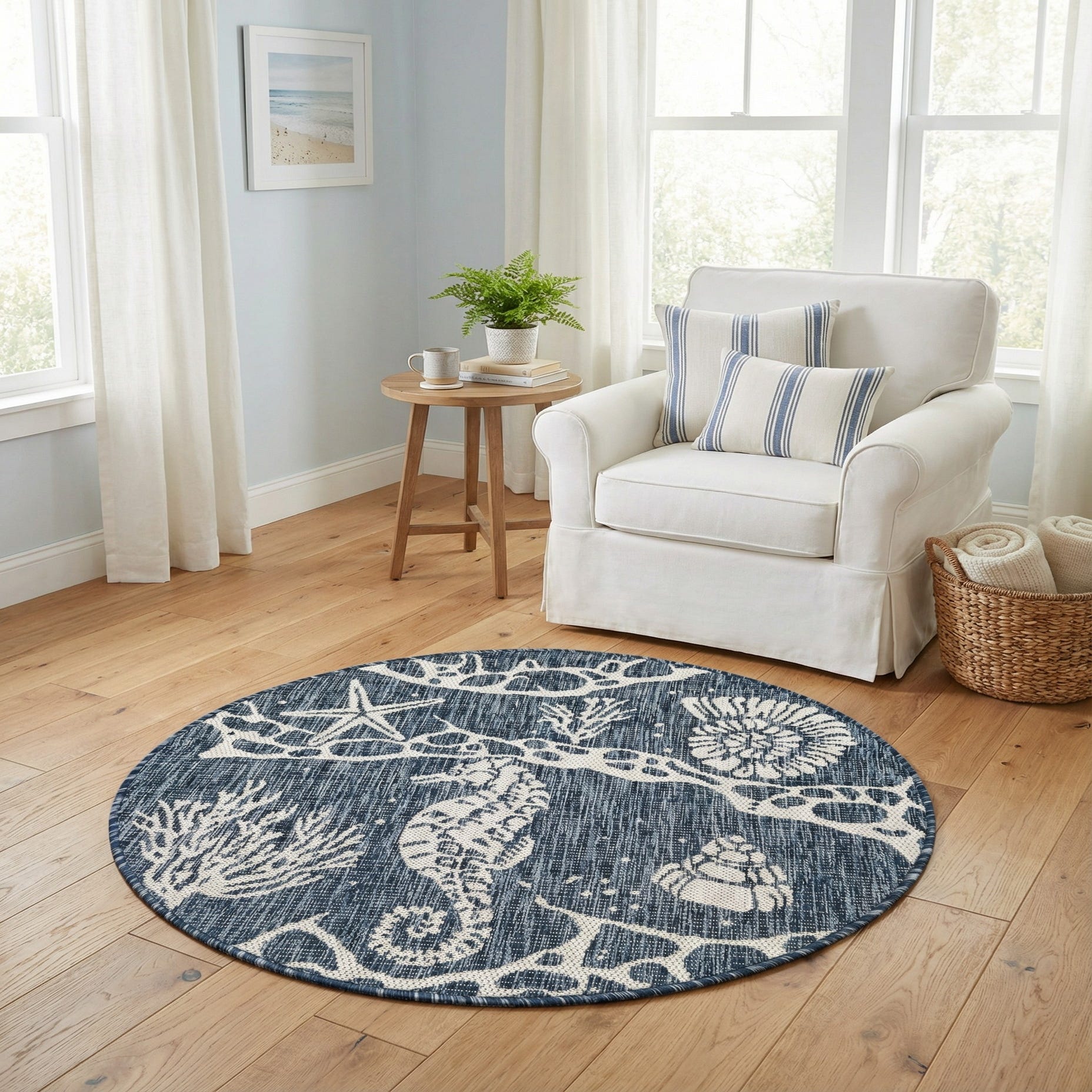 3' x 3' Washable Coastal Indoor / Outdoor Round Rug