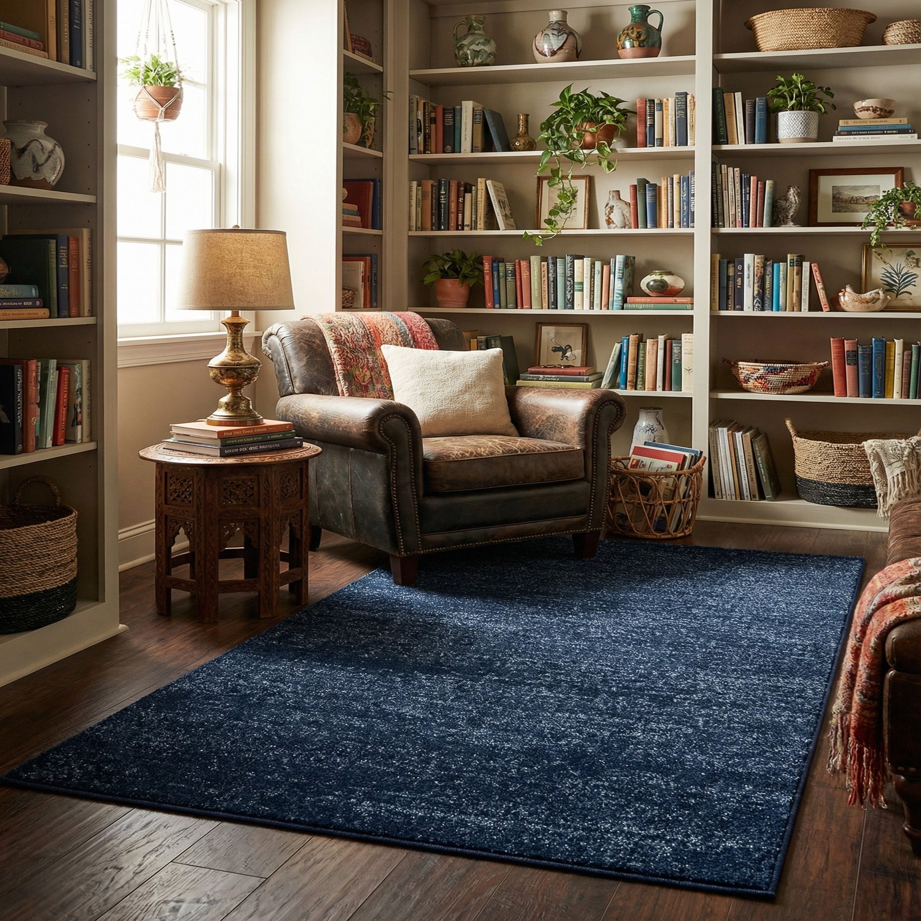 This versatile rug works well in contemporary, transitional, or coastal-inspired rooms. Use it to anchor an entryway or foyer, tuck it at the foot of a bed, place it under a reading chair, or layer it in a small seating arrangement to introduce color and warmth. Pair with warm wood furniture and neutral upholstery for contrast, or coordinate with lighter blue accents and textured pillows for a calm, cohesive palette.