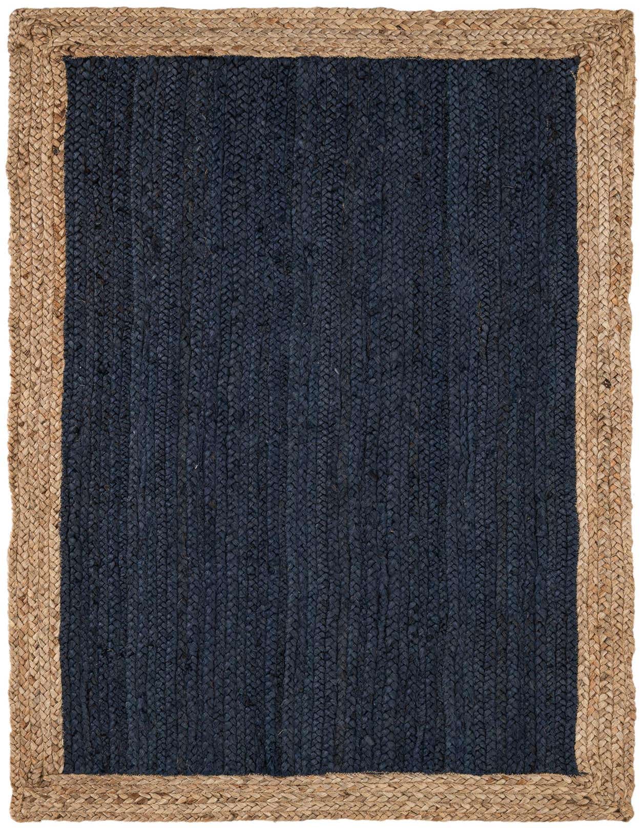 Primary color is Navy Blue. Colors in this rug include: Navy Blue, Natural.