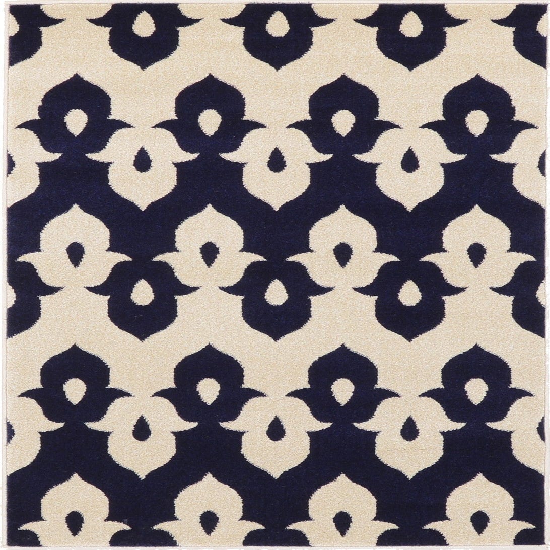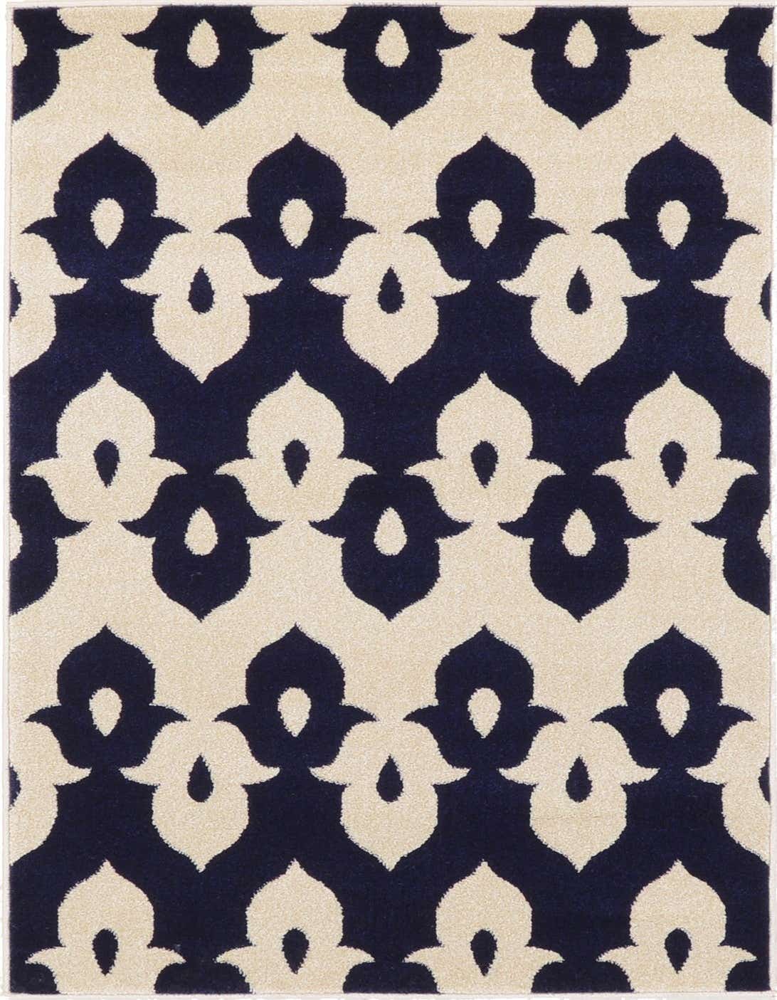 Primary color is Navy Blue. Colors in this rug include: Navy Blue, Beige.