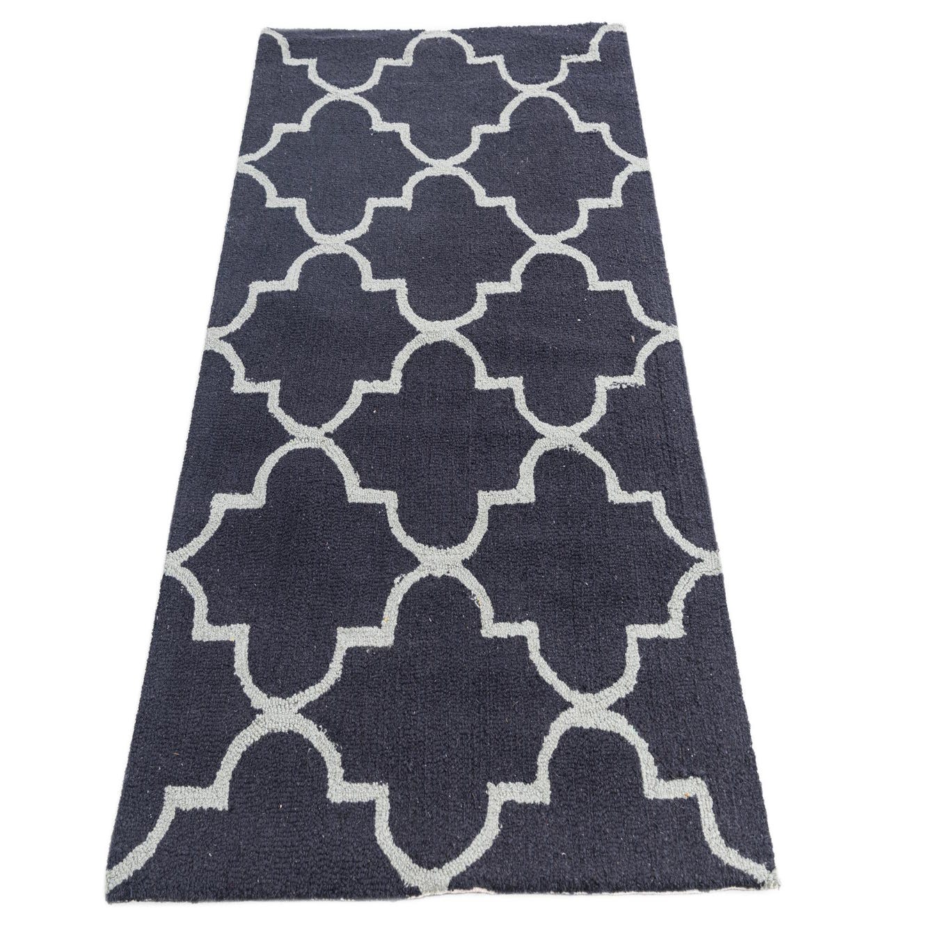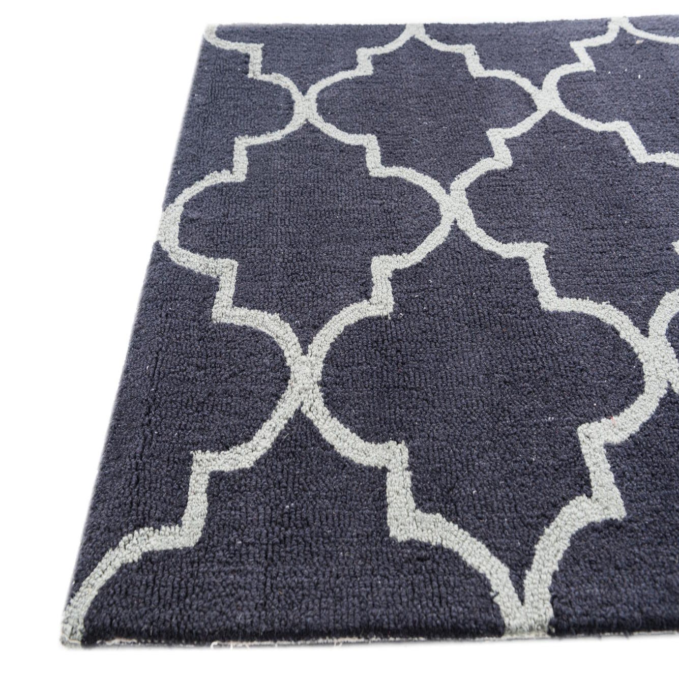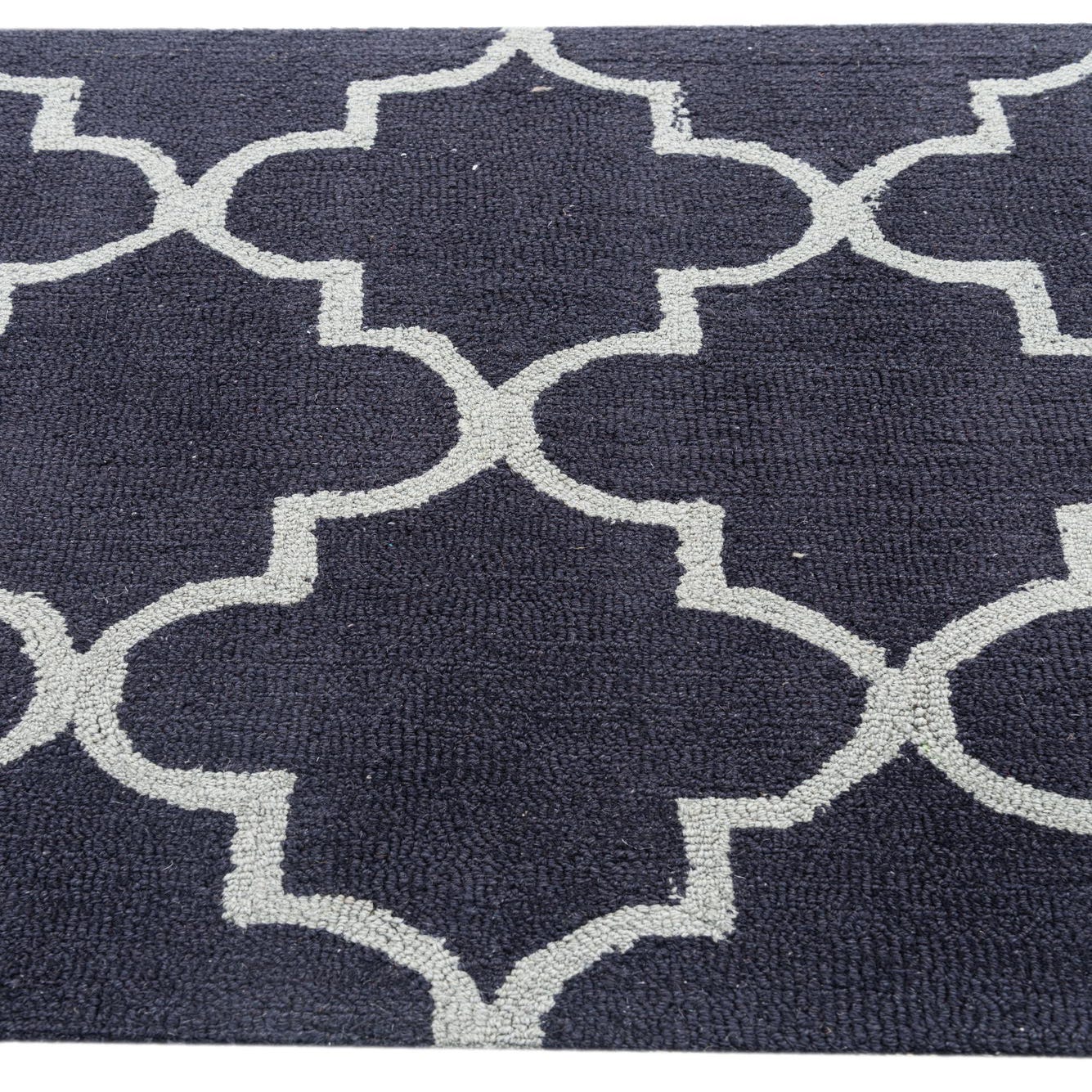 The Luna Collection rug presents a timeless trellis pattern that is a staple in modern and transitional design. Hand-tufted with a blend of wool and cotton, this 3x5 rug showcases a navy blue background contrasted with elegant gray linework, offering both visual interest and a sophisticated color palette. The rug's texture is enriched by the high-quality materials, providing a plush feel underfoot, while the addition of fringe on the edges gives it a classic finishing touch.