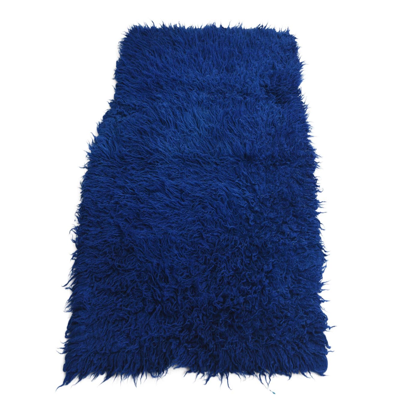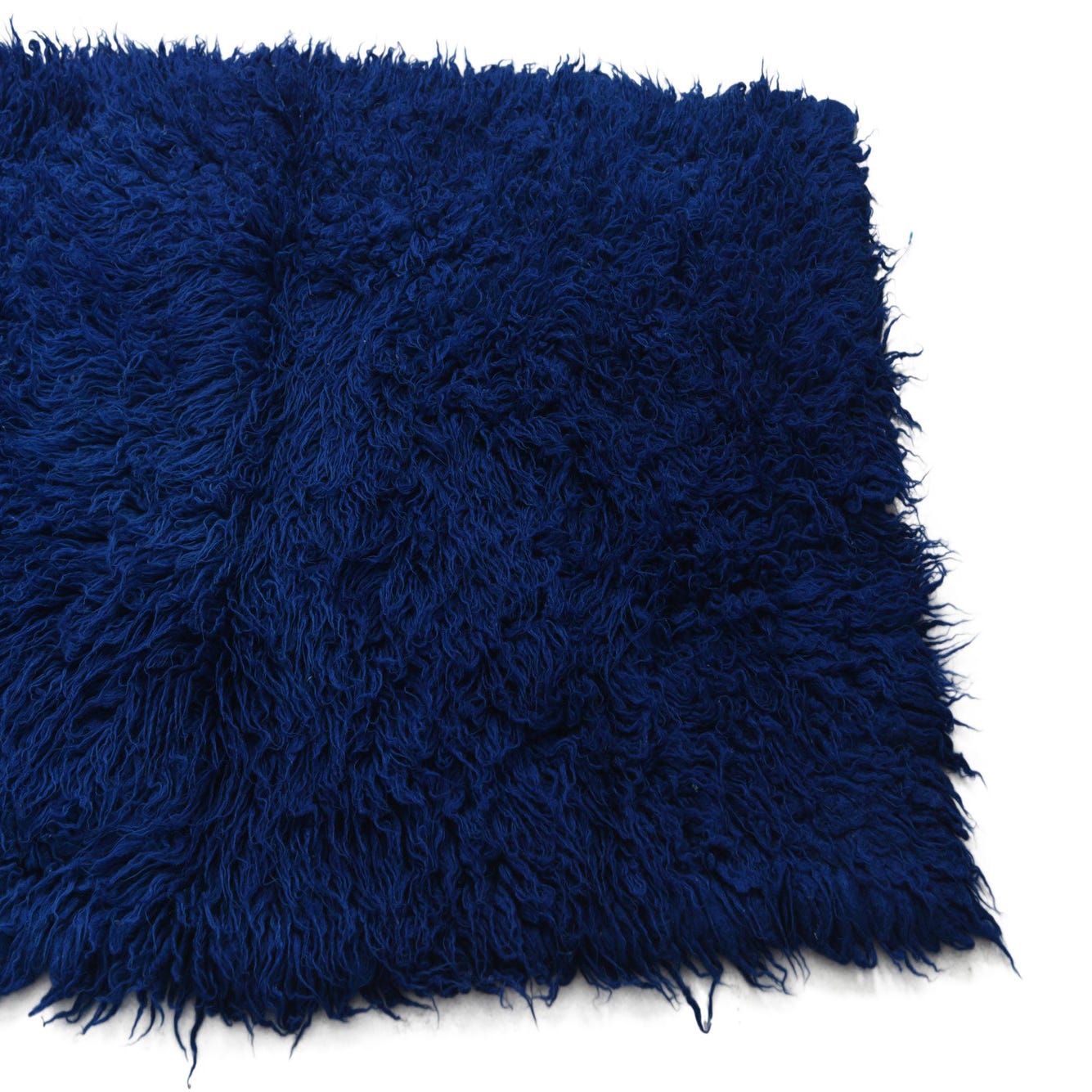 A plush 3x5 rectangular navy blue shag rug with a thick, shaggy pile, perfect for adding warmth.
