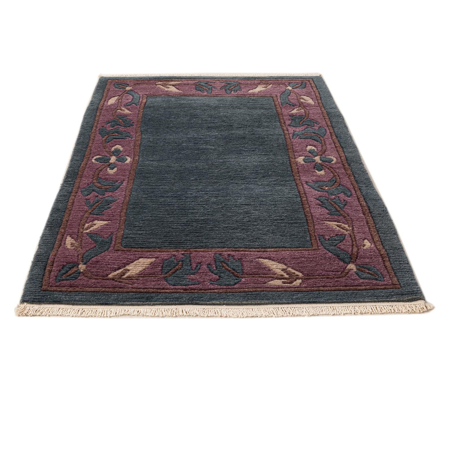 A 3x5 rectangular Rugs.com Nepal rug featuring a deep blue field with a plum and beige floral-vine border, ideal for an entryway.