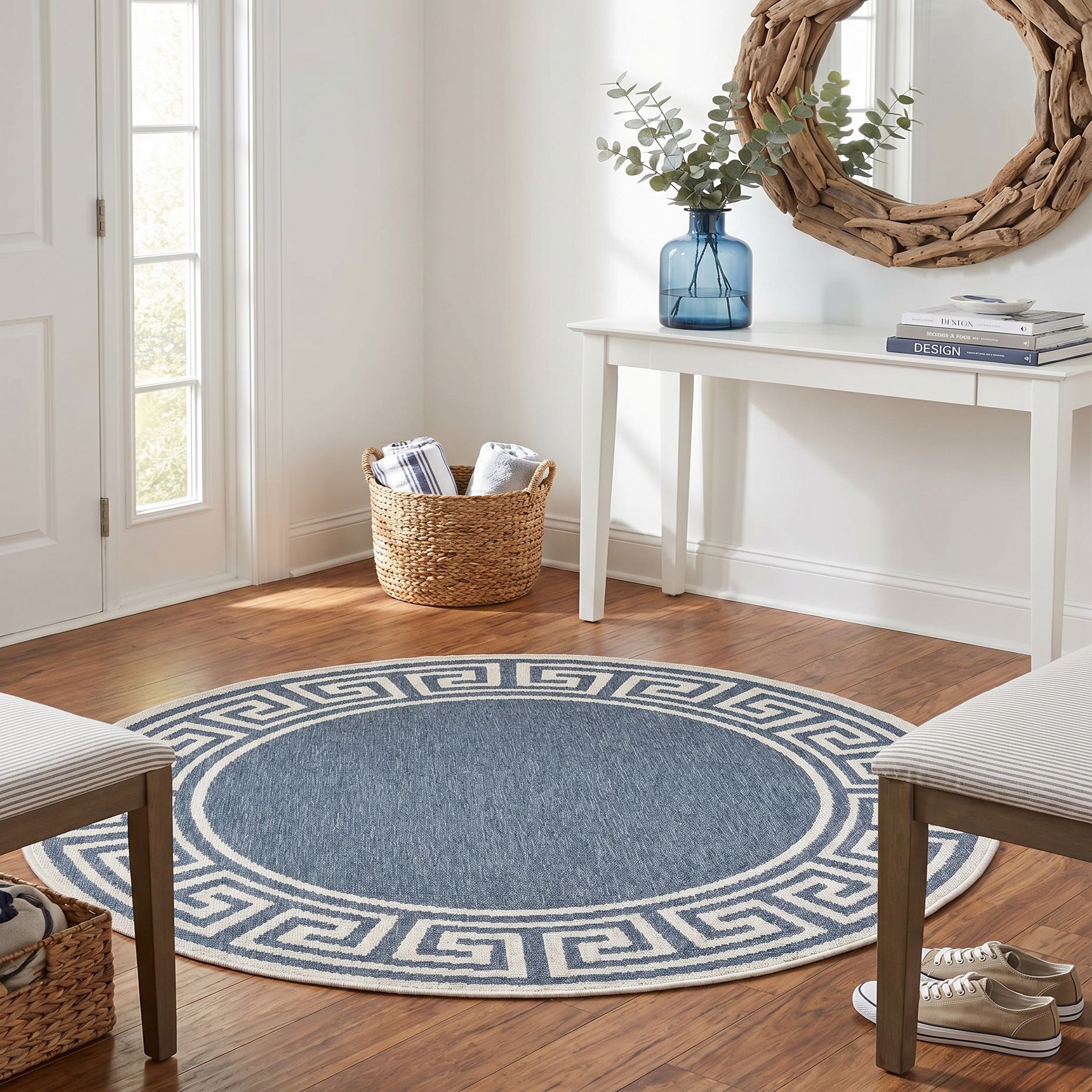 4' x 4' Easy-Clean Coastal Indoor / Outdoor Round Rug