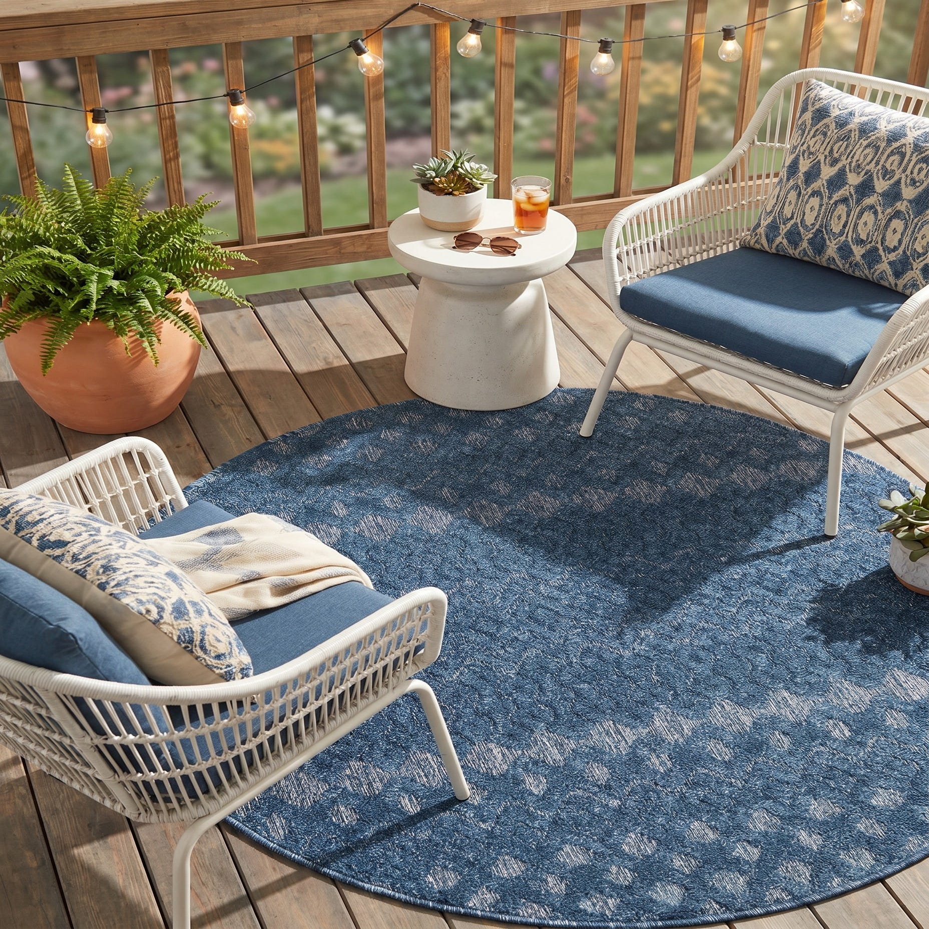 I am so in love this beautiful blue 9 X 12 Trellis Textured rug that my son got for me for Mother's Day 2022. I love the way if feels under my feet when I walk on it and it is exactly what I was looking for the size and the color of navy blue is a perfect blend with my patio peacock decor. Thank you my awesome son. You have made my Mother's Day and thank you Rugs.com for offering such a beautiful rug for my son to purchase for me.
