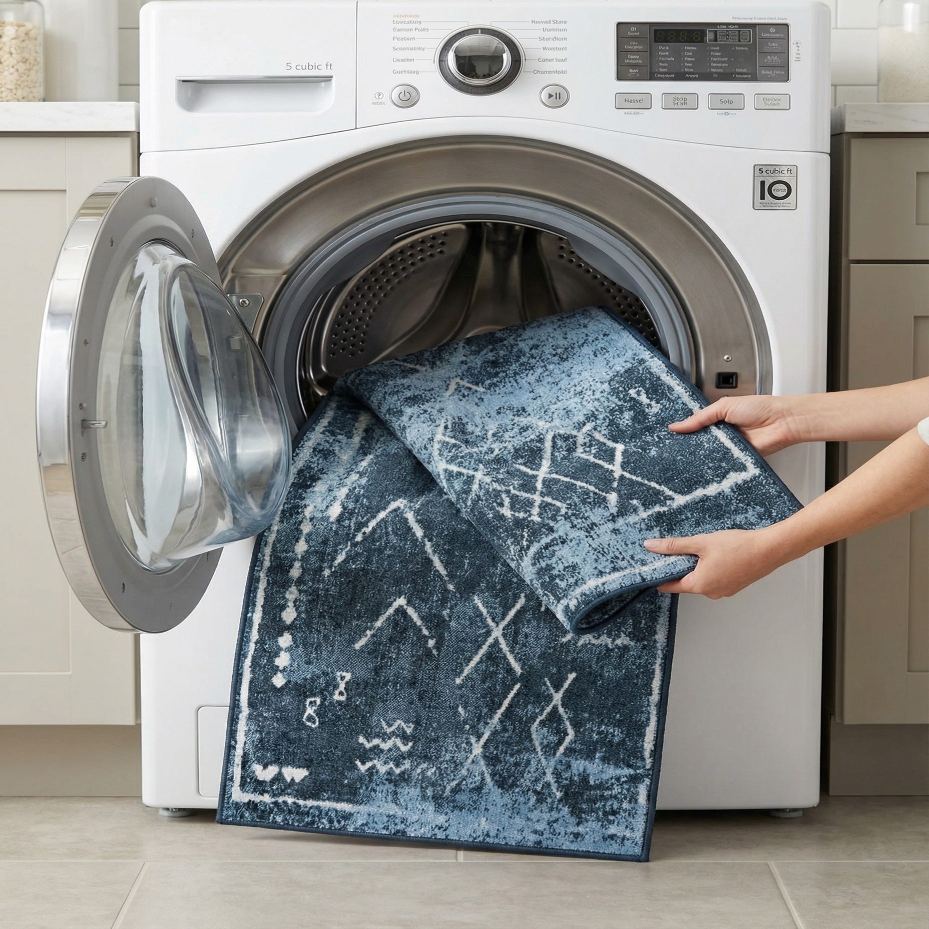 Designed to define narrow spaces, this runner works well in an entryway or hallway to guide circulation, under a console table to anchor styling, or along a galley kitchen for a pop of color. Its navy background pairs cleanly with light wood floors, white or gray cabinetry, and navy or ivory accents, and it complements contemporary, coastal, and transitional interiors looking for layered color and pattern without heavy texture.