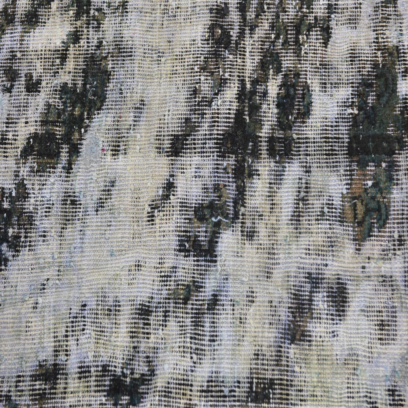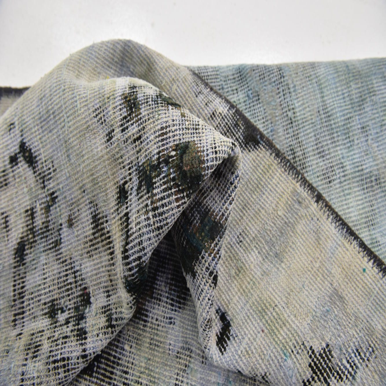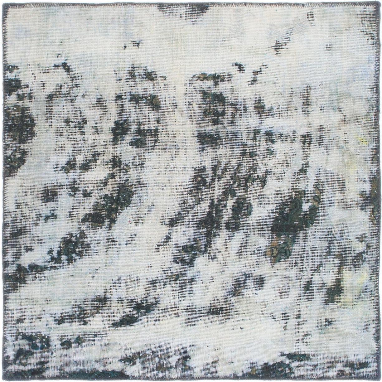 A square 3' 8 x 4' 0 Ultra Vintage wool rug featuring an abstract, distressed pattern in shades of blue and white.