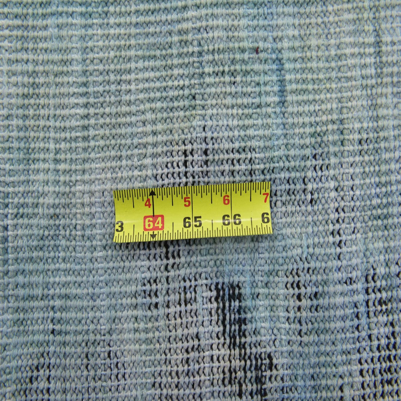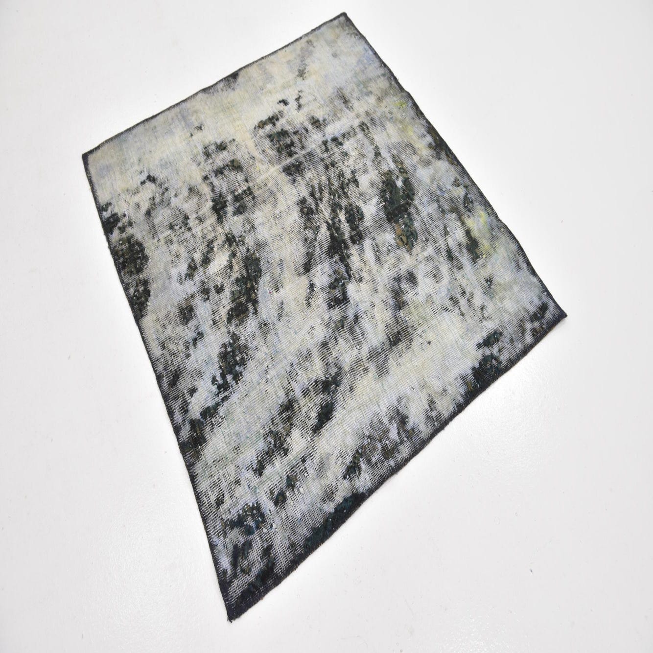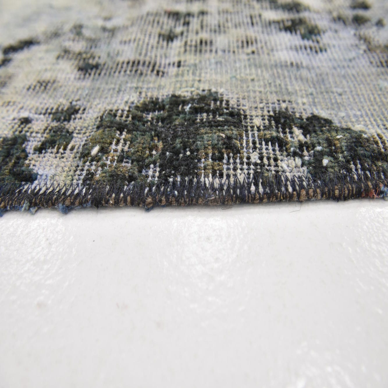A square 3' 8 x 4' 0 Ultra Vintage wool rug featuring an abstract, distressed pattern in shades of blue and white.