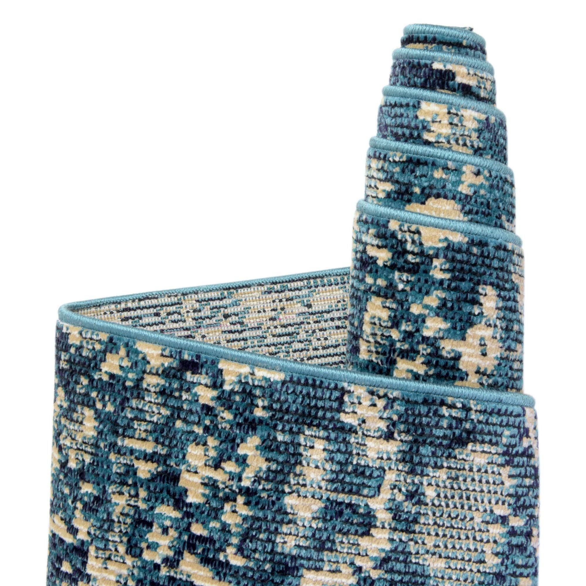Machine made from 100% polypropylene, the rug has a low, even pile with a smooth, slightly cushioned hand and a tight construction that keeps the pattern crisp. Place it under a coffee table to anchor a contemporary living room, use it to add depth and color to a coastal or transitional bedroom, or layer it over hardwood in a home office for visual interest. Its mix of classic motifs and updated distressing complements both traditional furniture and modern, streamlined decor.