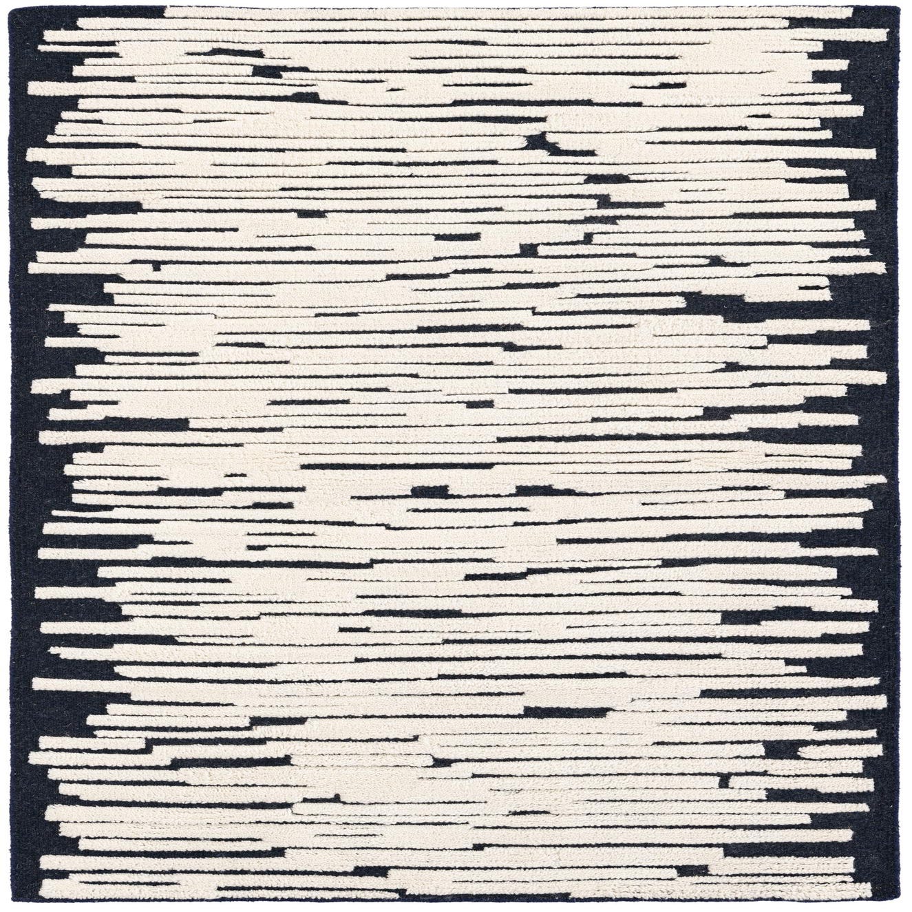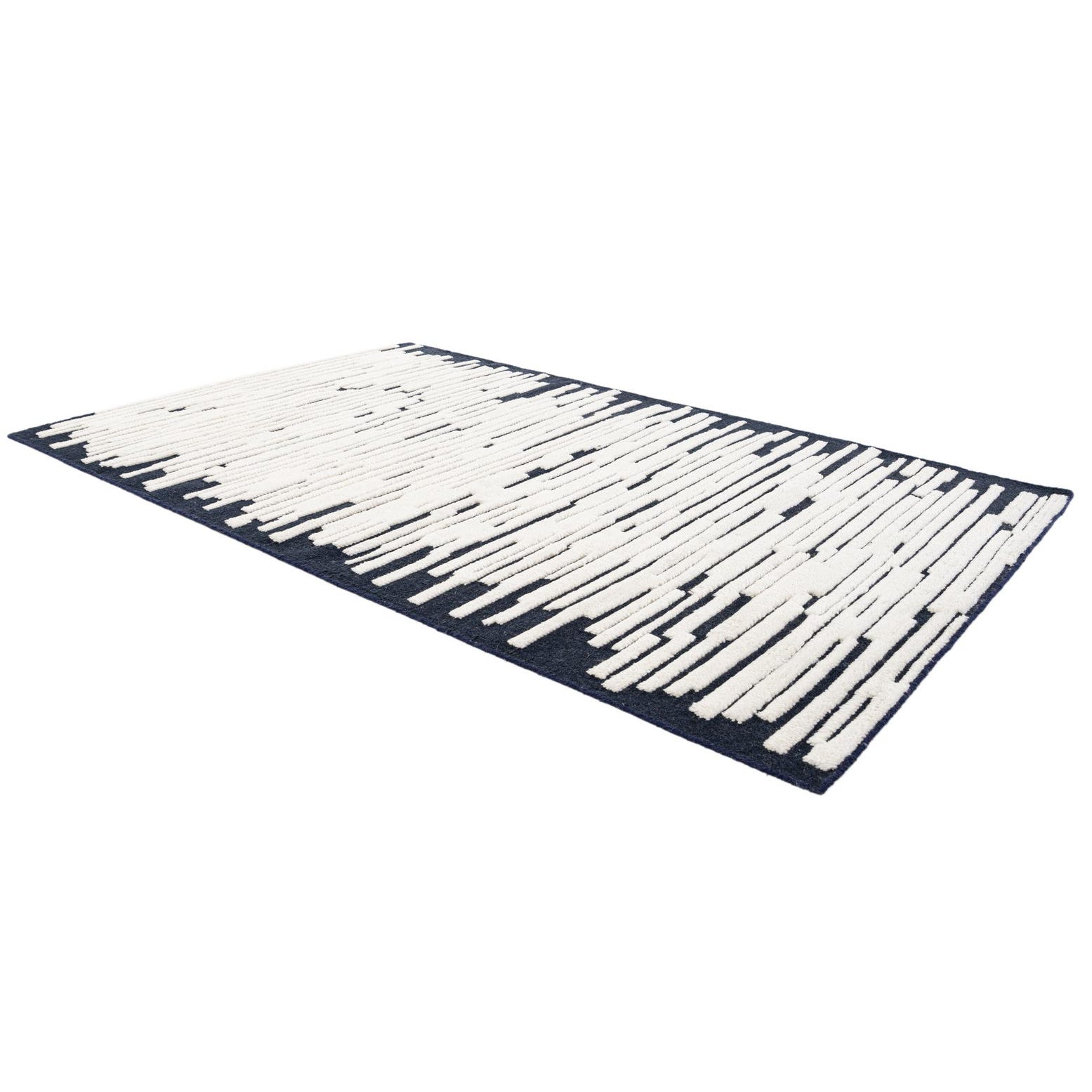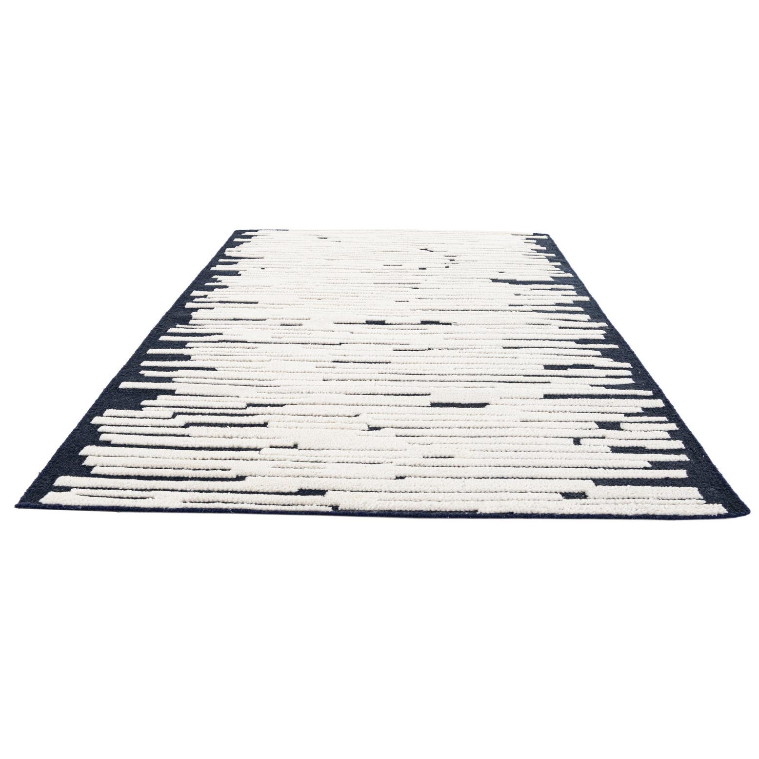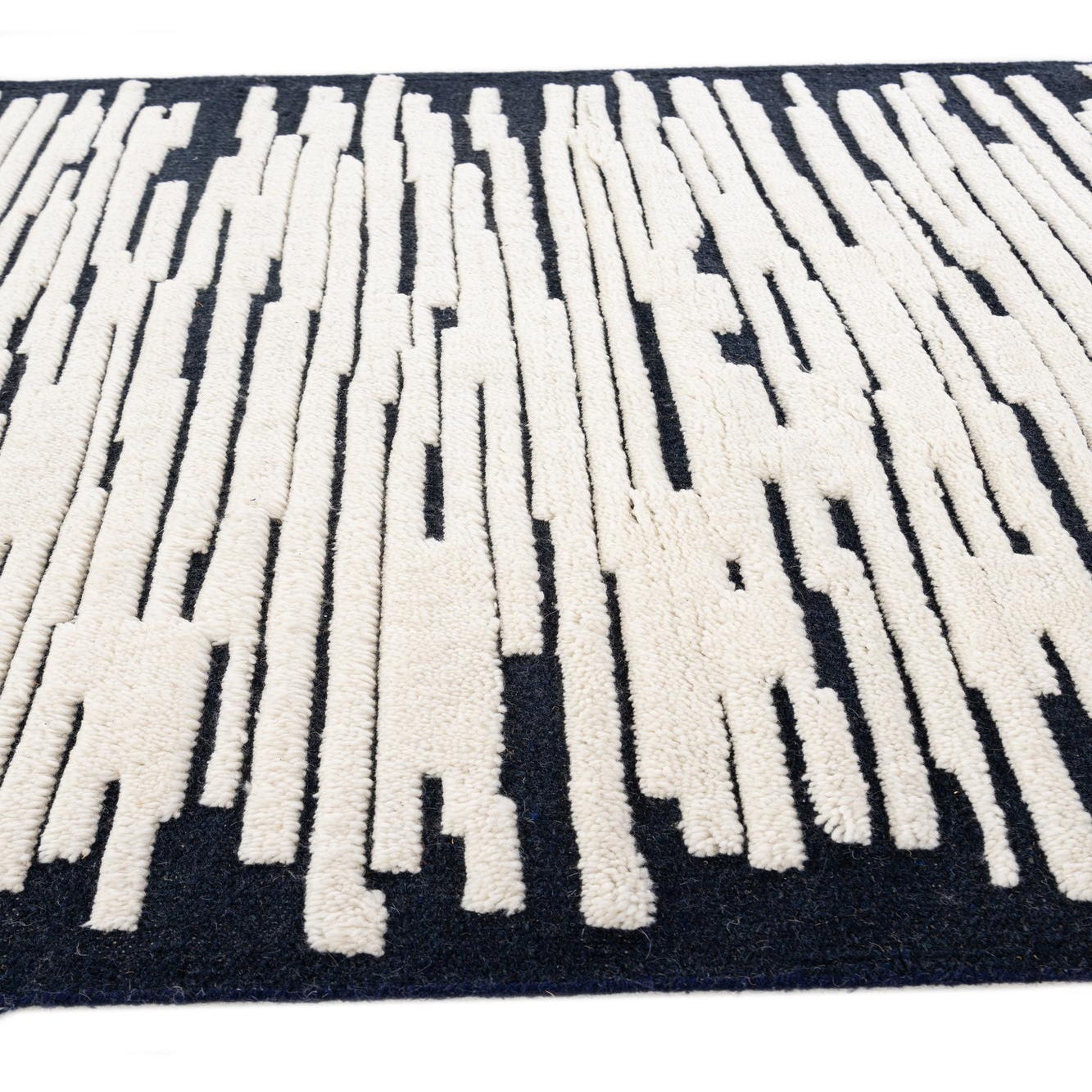 Primary color is Navy Blue. Colors in this rug include: Navy Blue, Ivory.