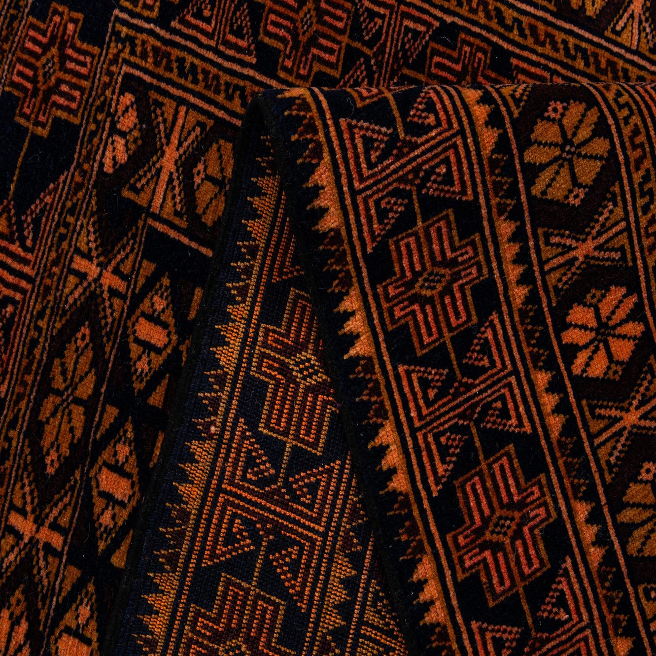 A 4x6 rectangular Lahour rug featuring a traditional Oriental pattern in deep blues and warm orange-brown accents, with a flat pile.