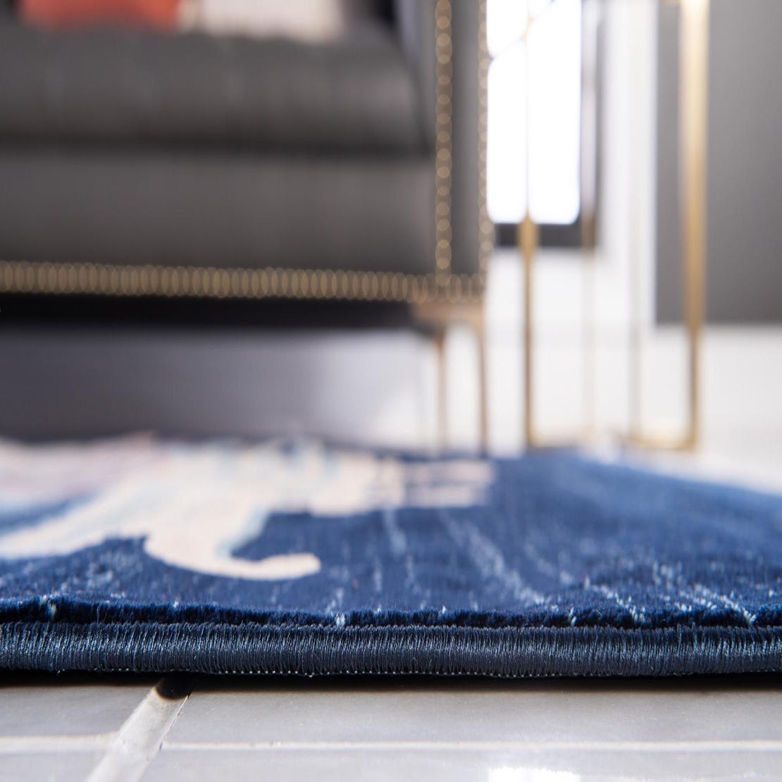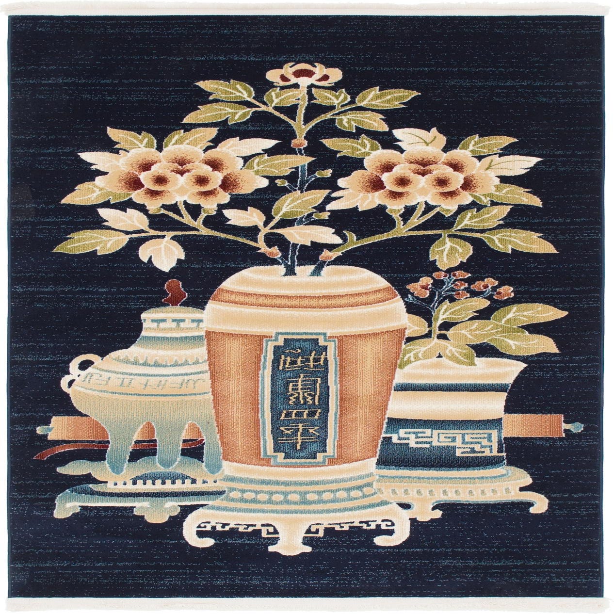 Primary color is Navy Blue. Colors in this rug include: Navy Blue, Cream, Green, Olive, Peach, Burgundy, Ivory.